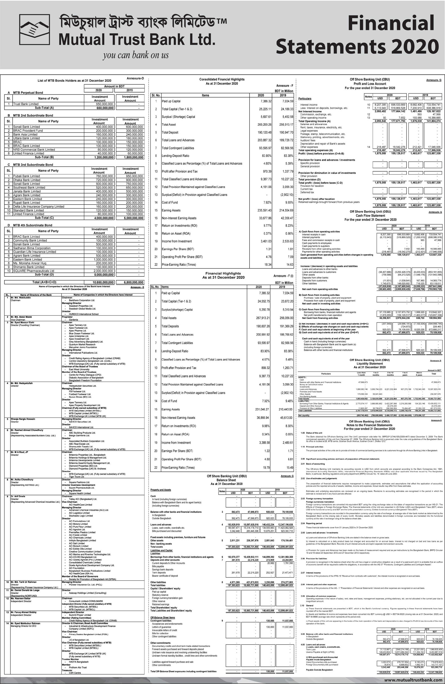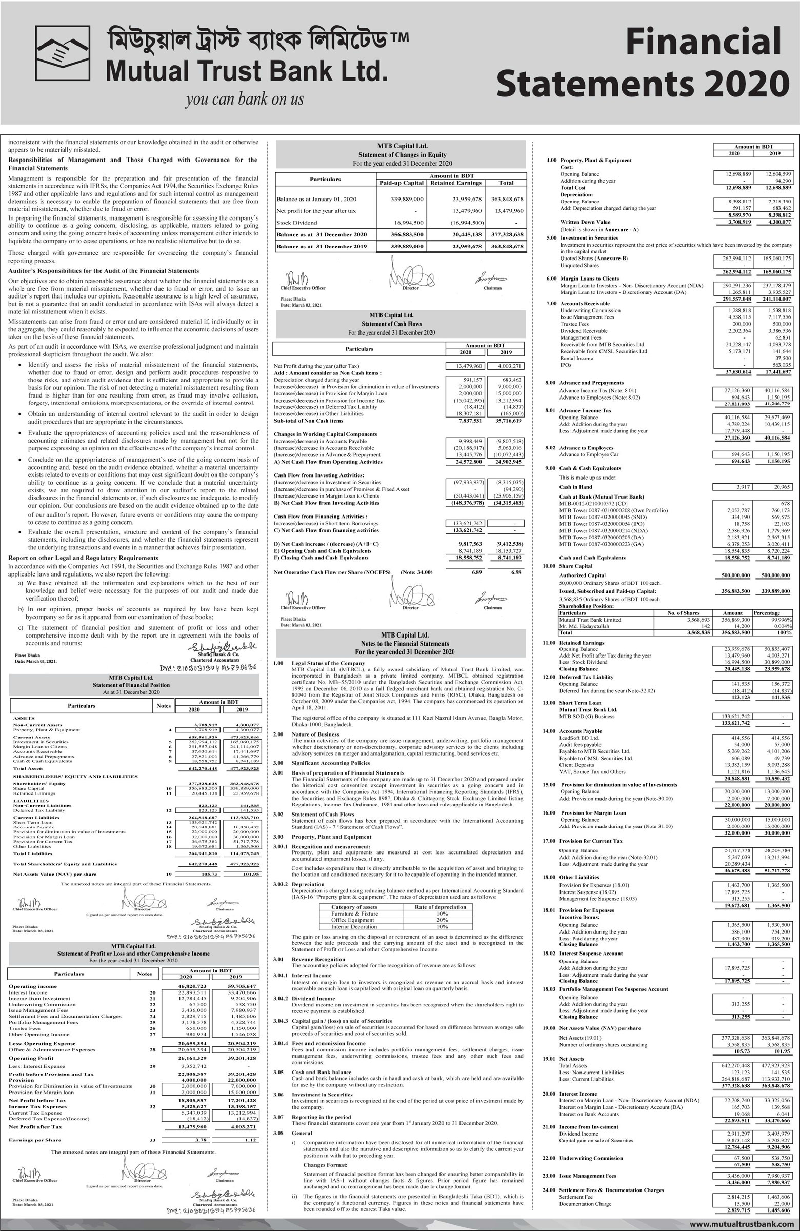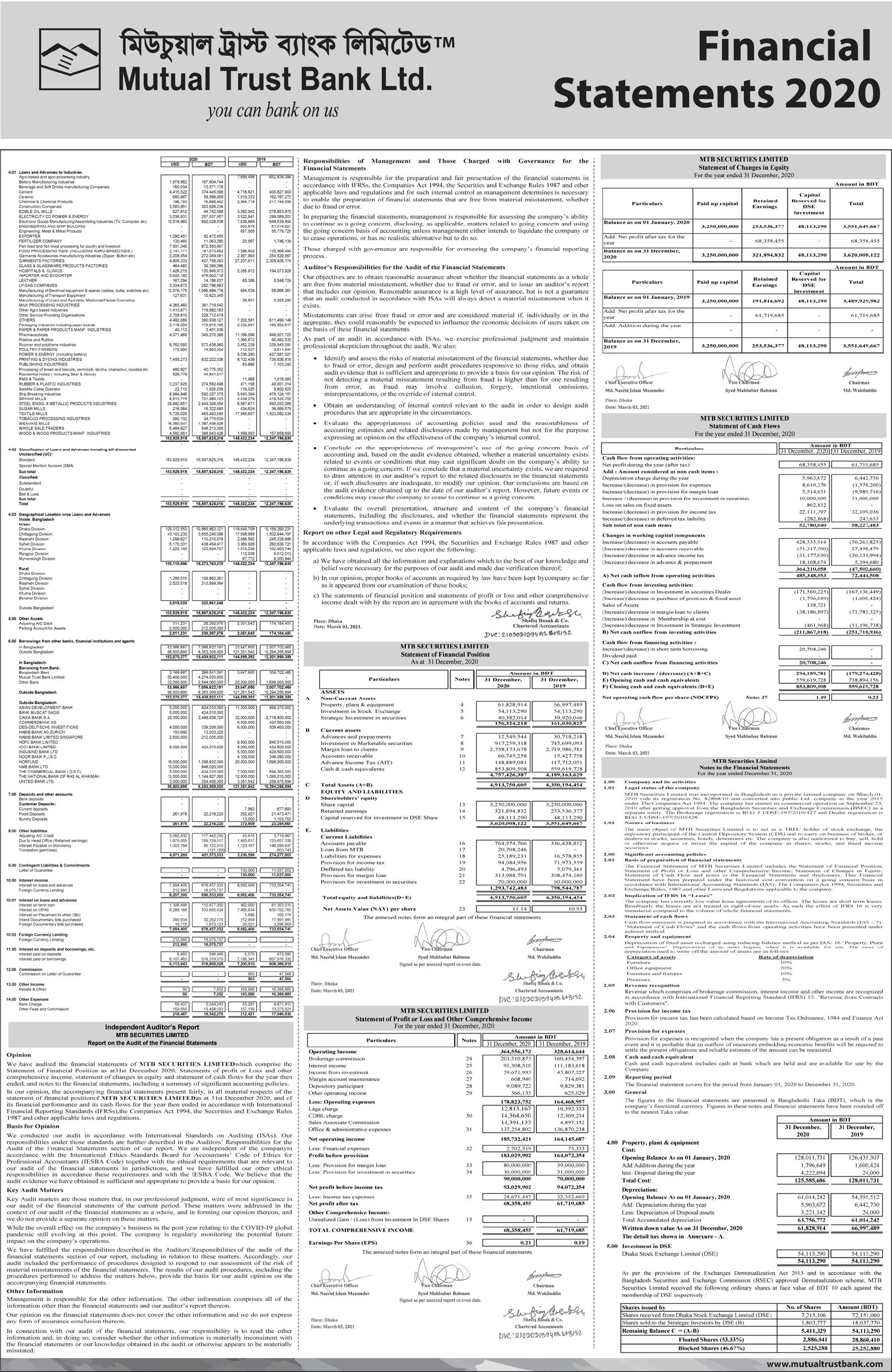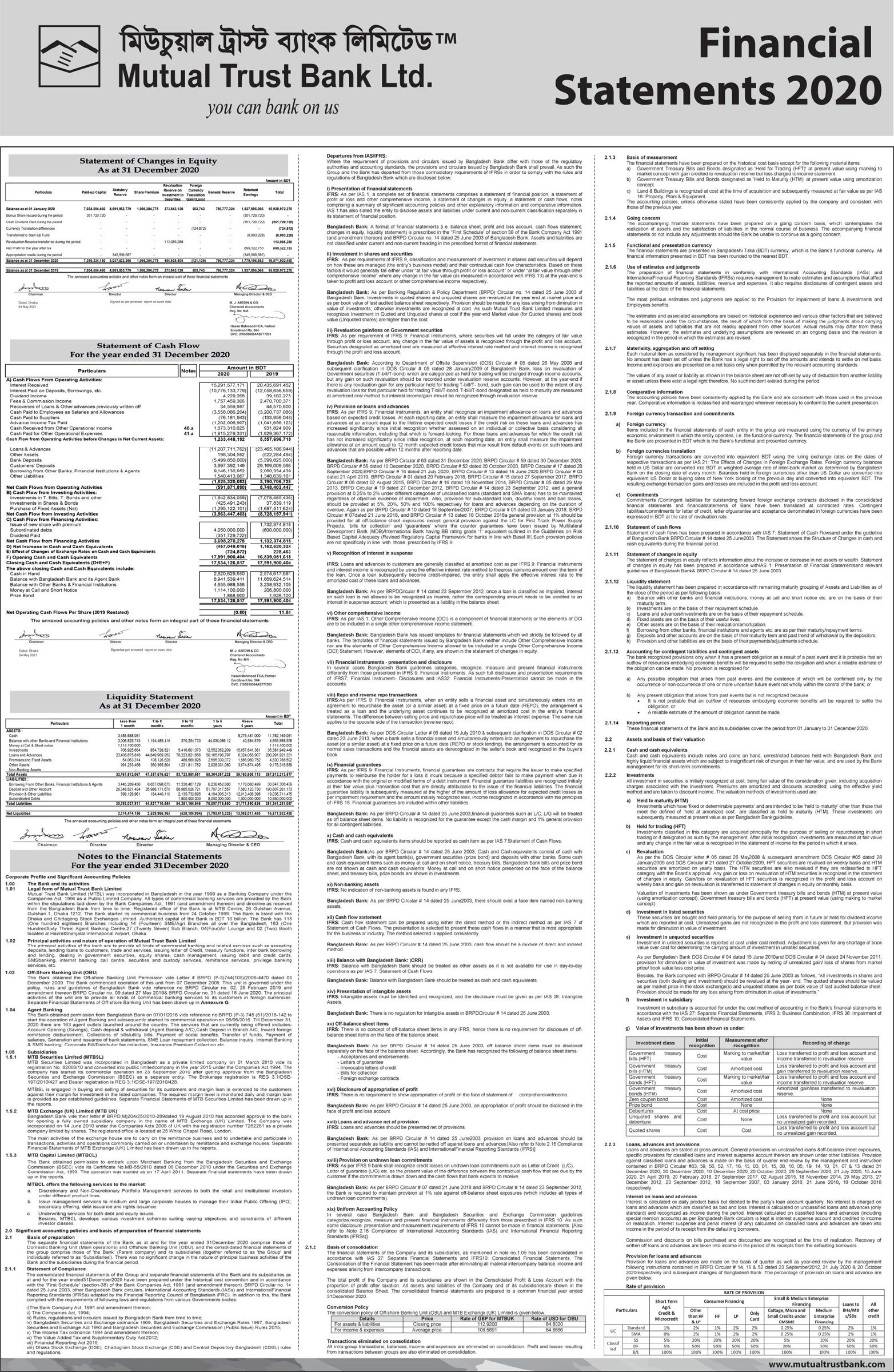 Financial Statements of Mutual Trust Bank PLC.