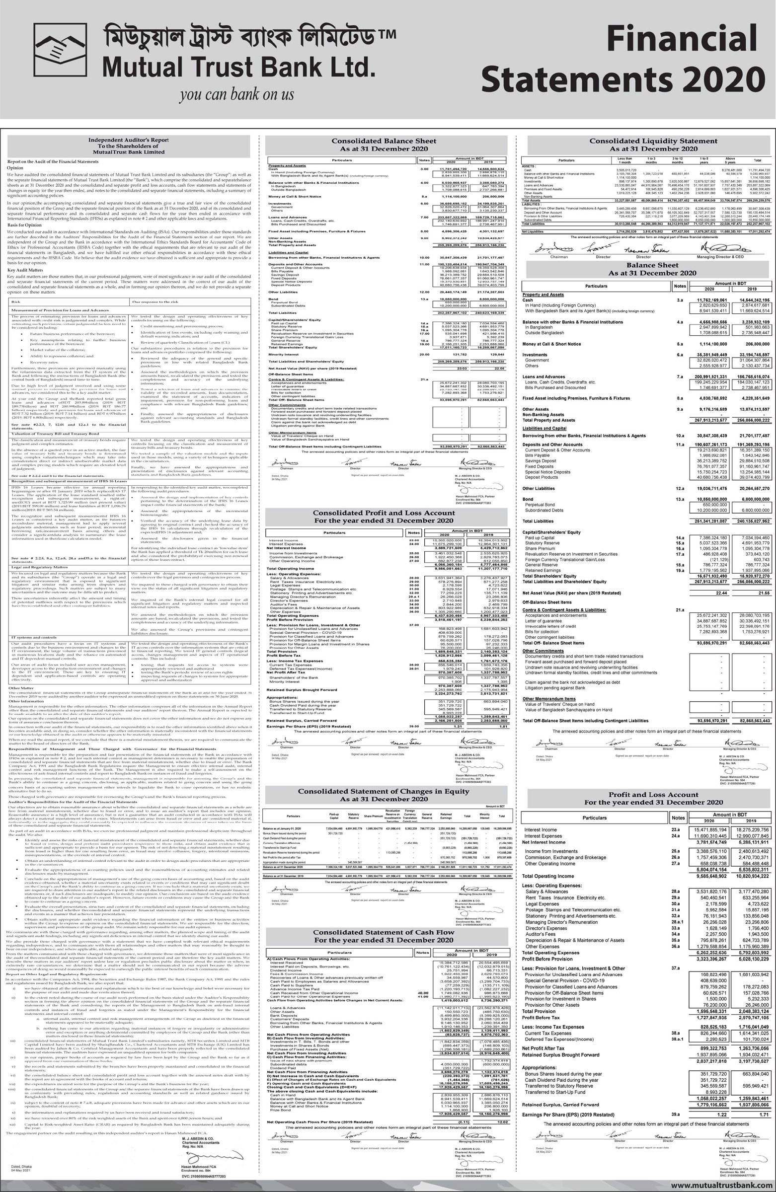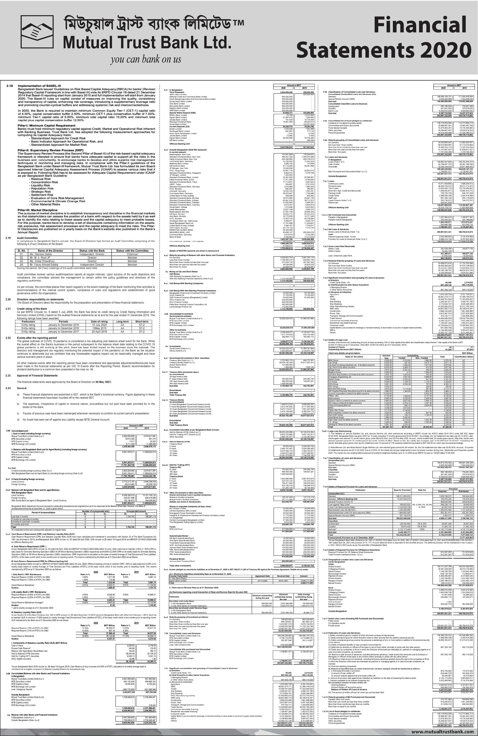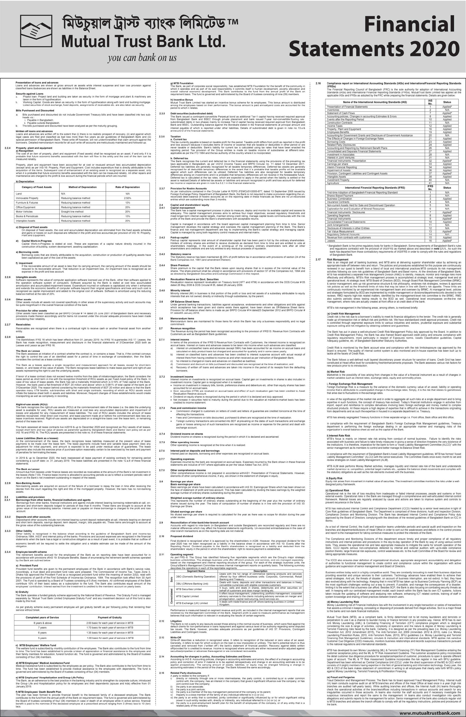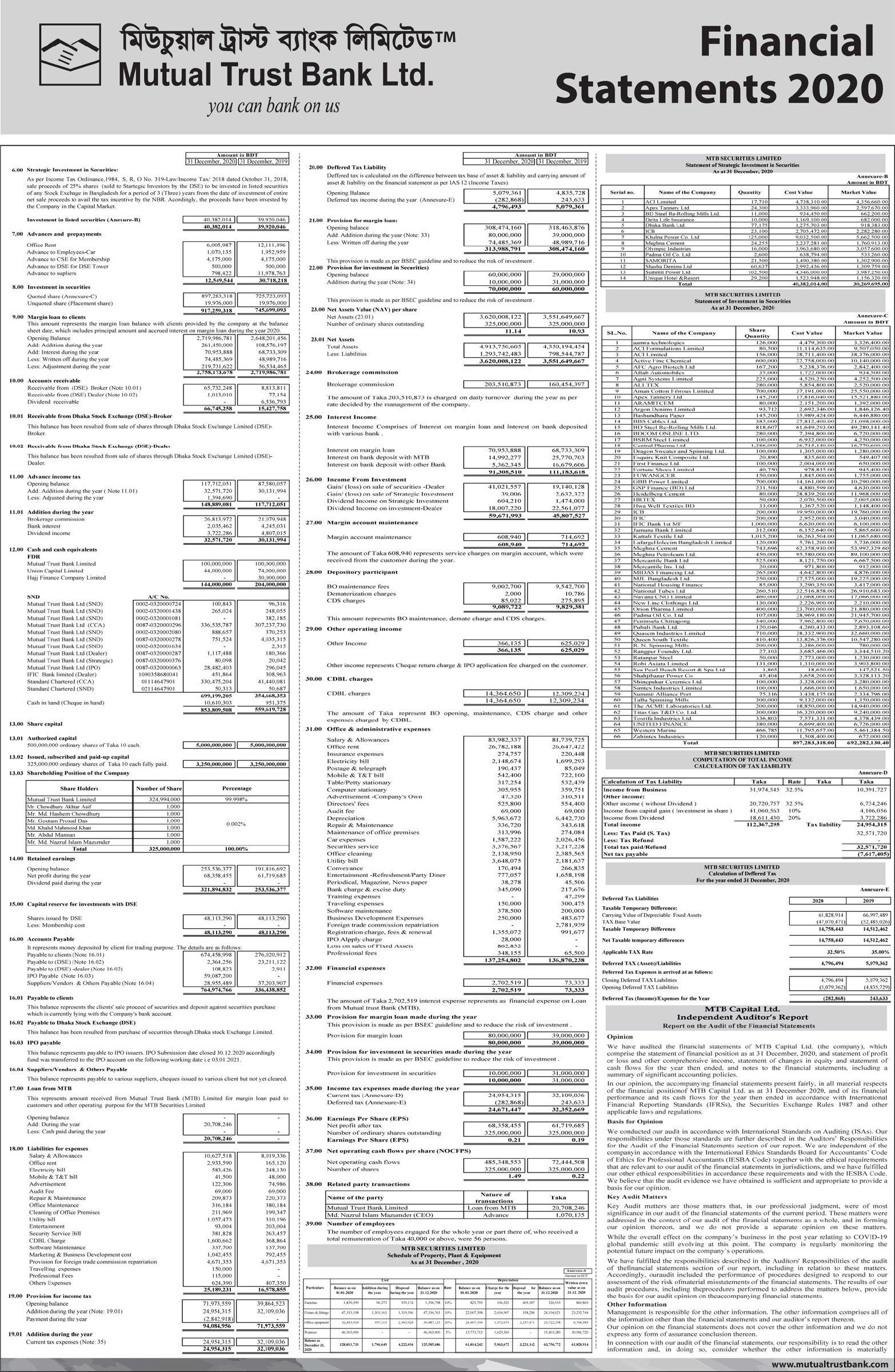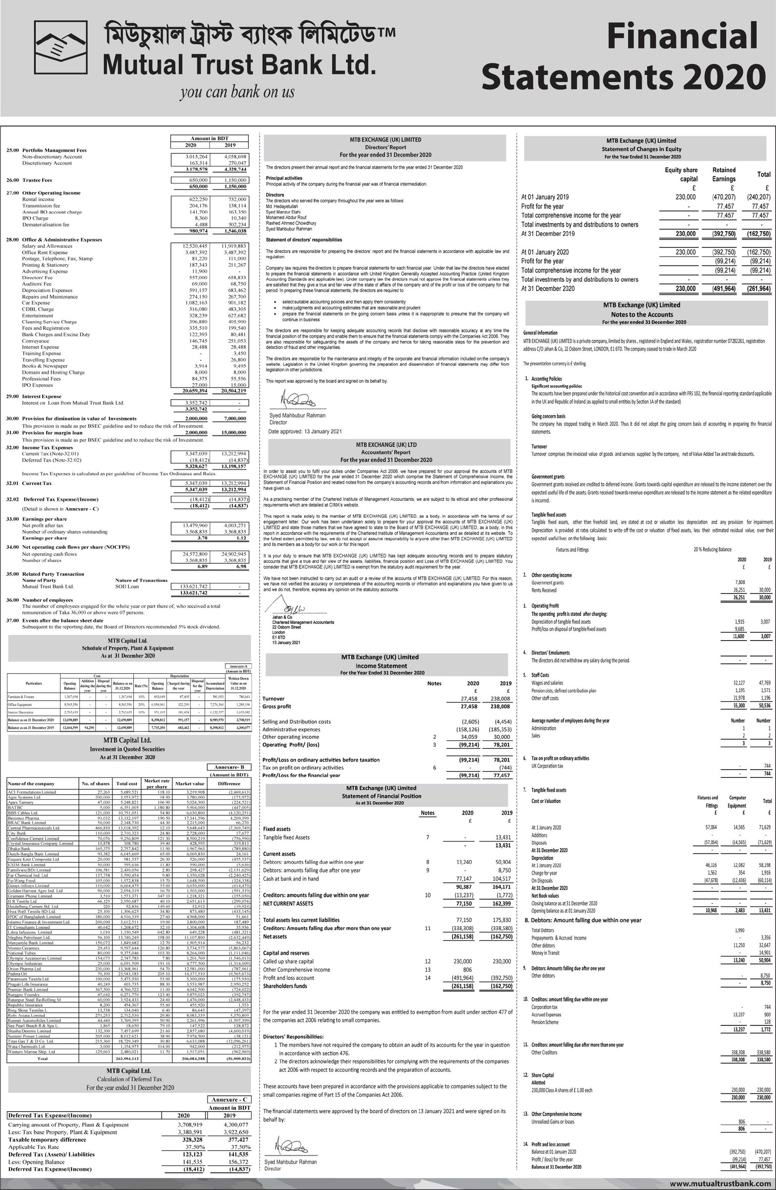 Financial Statements of Mutual Trust Bank PLC.