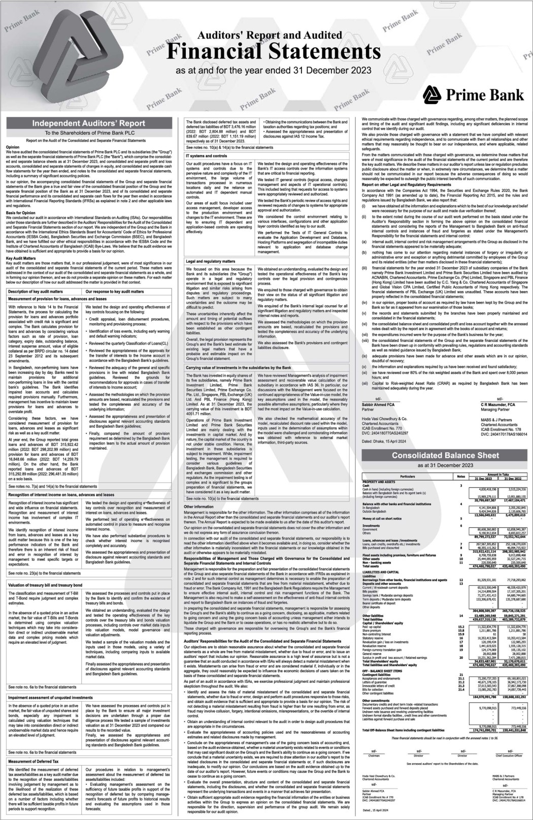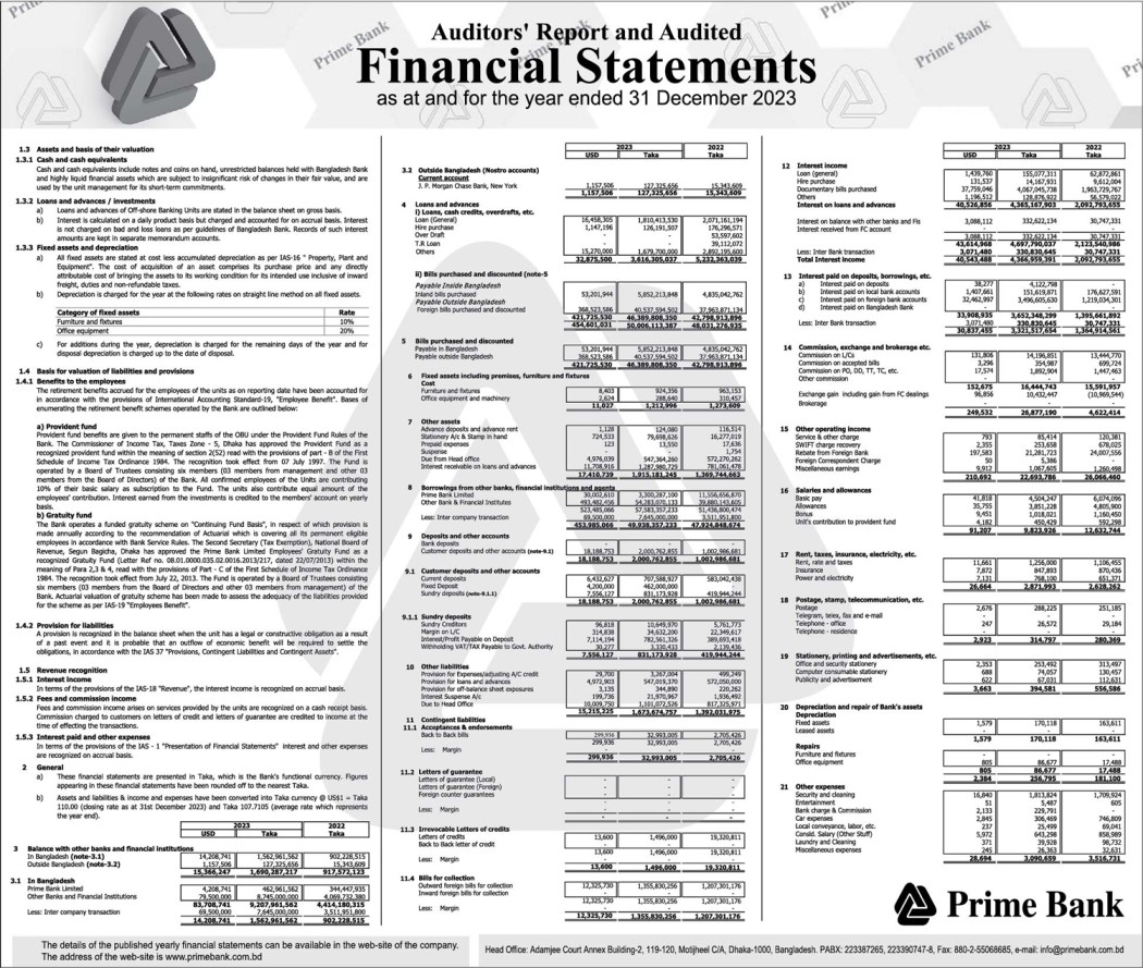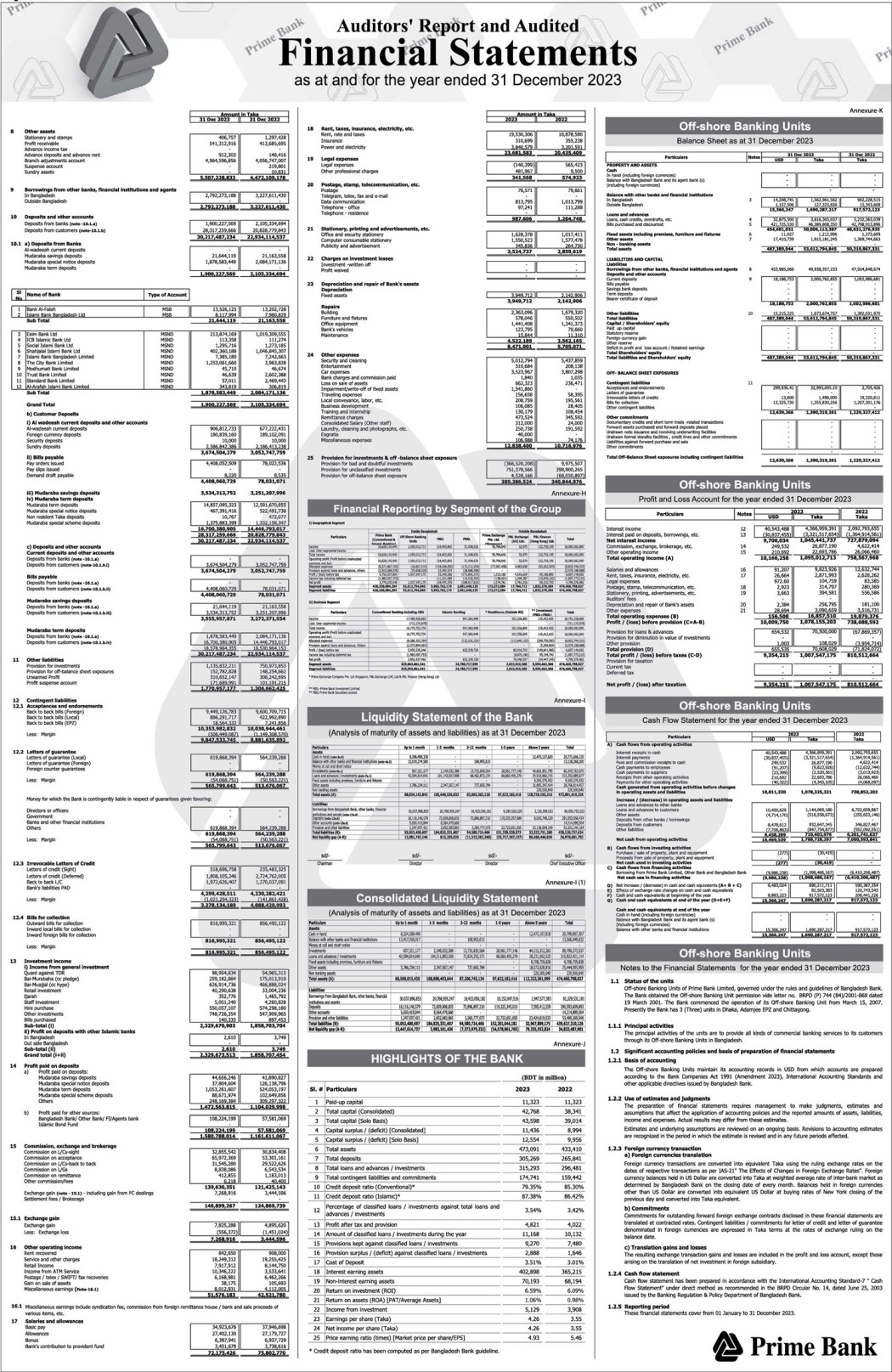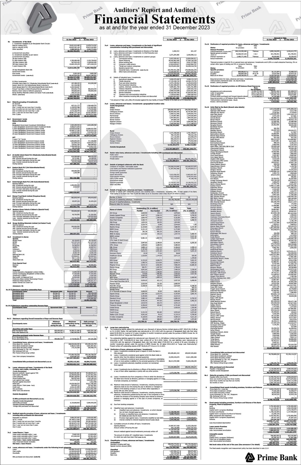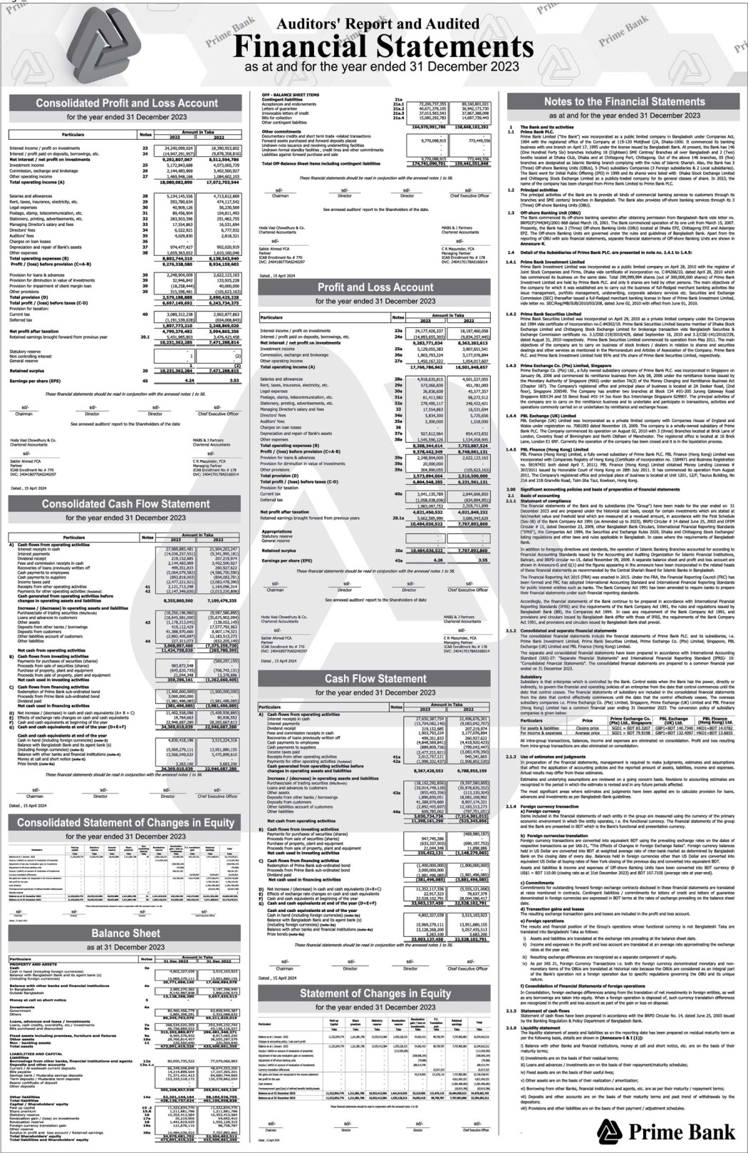 Half Yearly Un-audited Financial Statements of Prime Bank