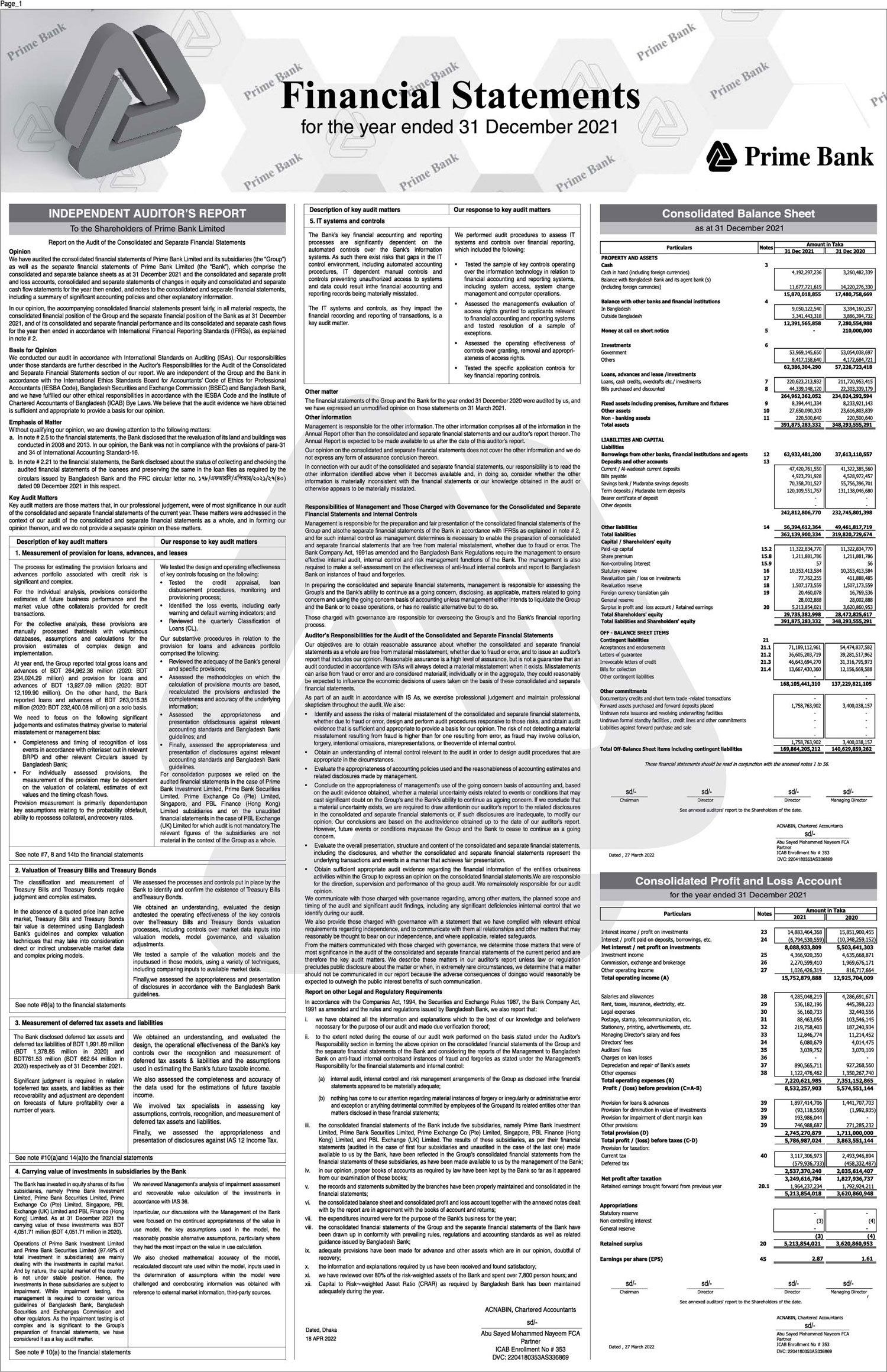 Half Yearly Un-audited Financial Statements of Prime Bank
