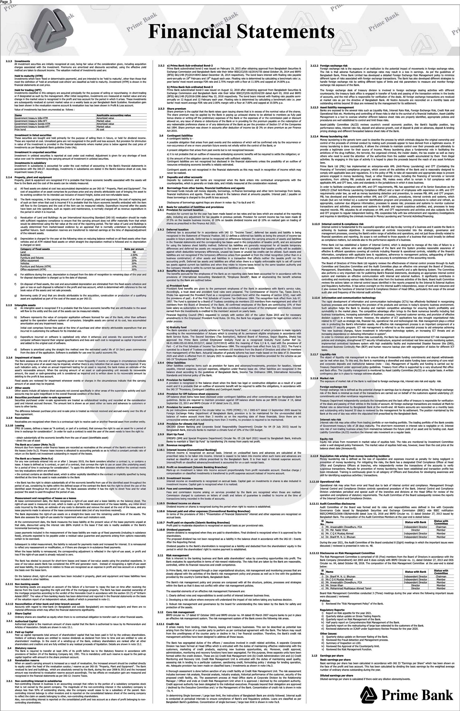 Half Yearly Financial Statements (Un-audited) of Prime Bank