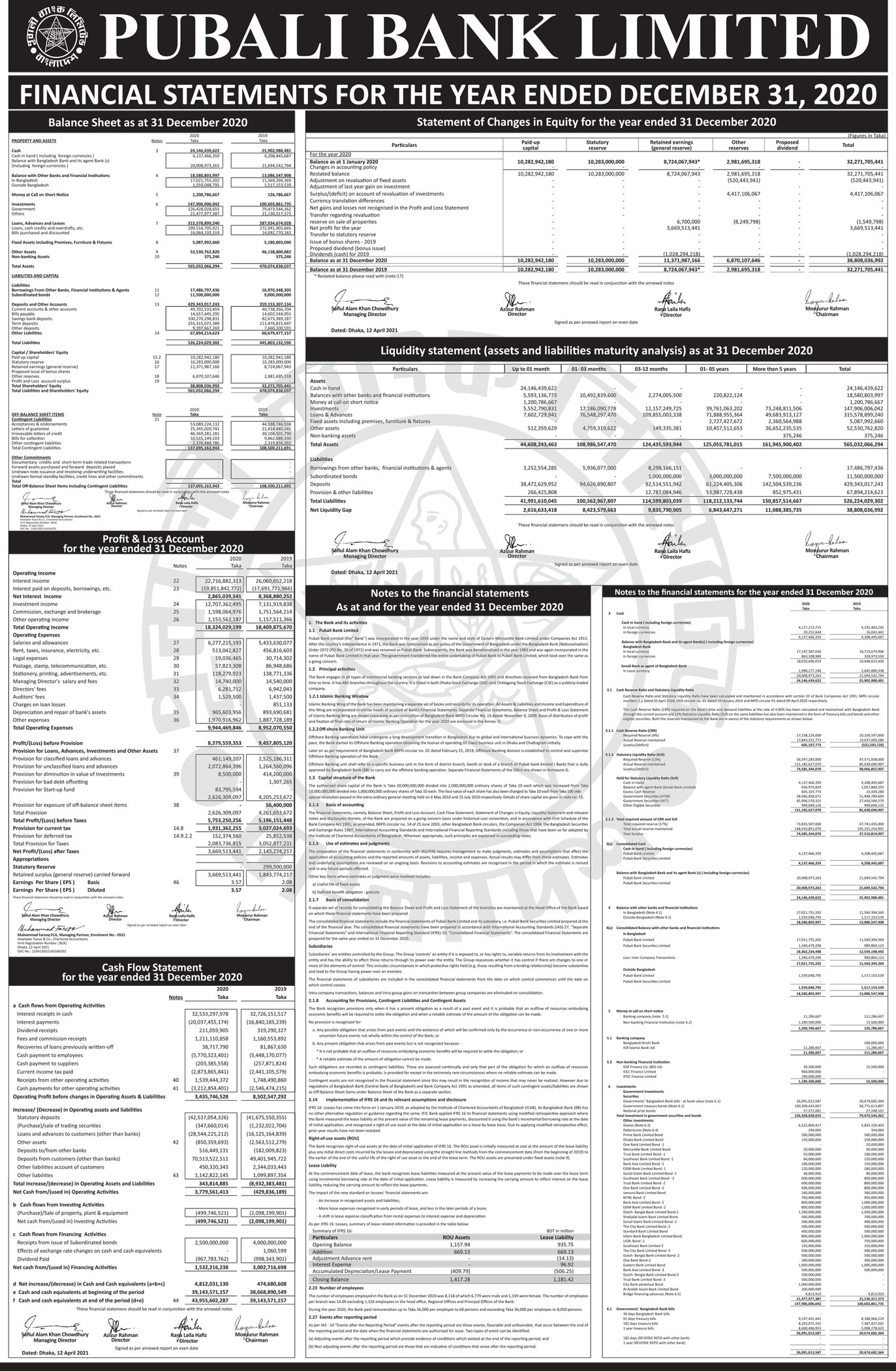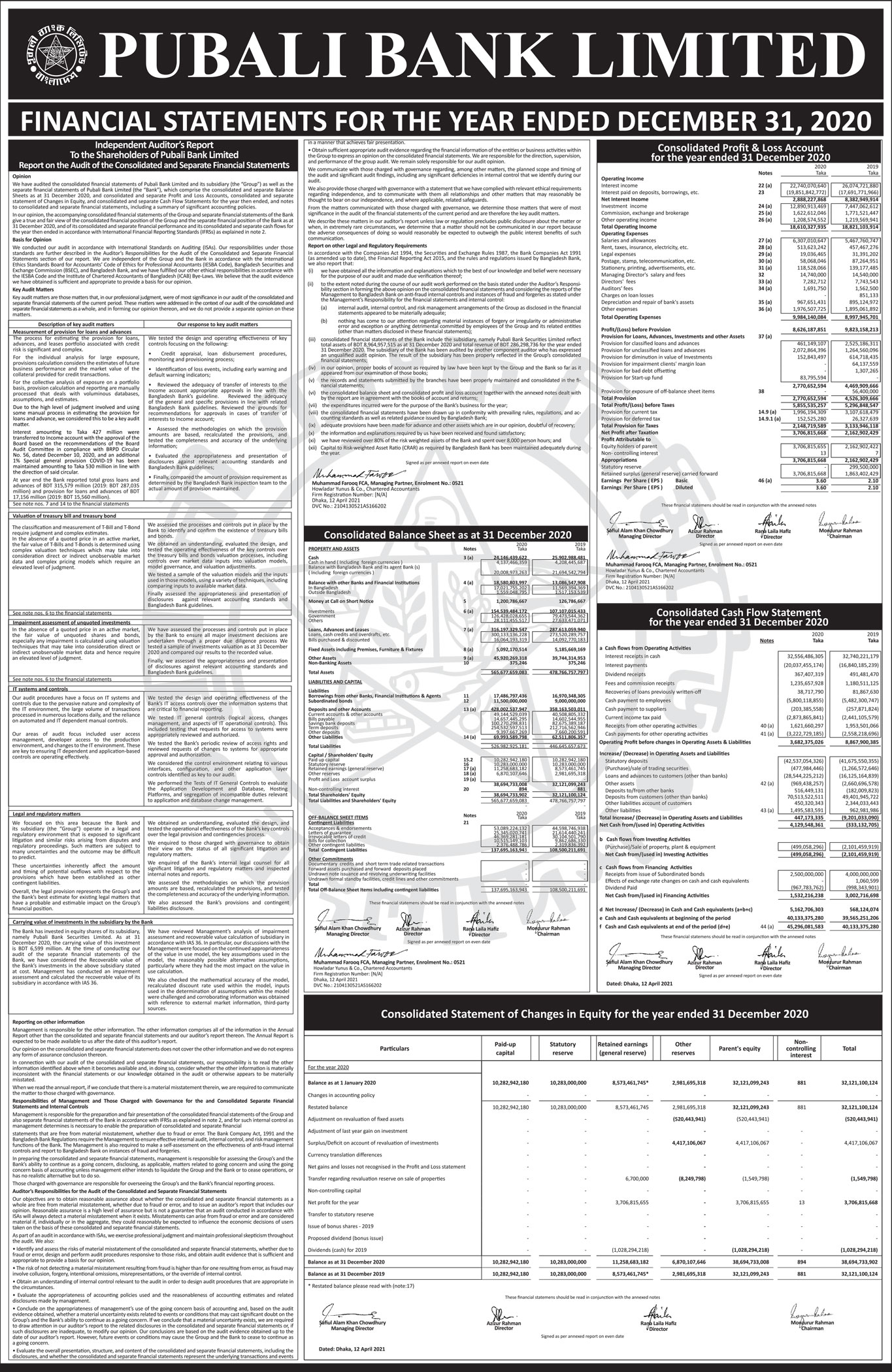 Financial Statements of Pubali Bank