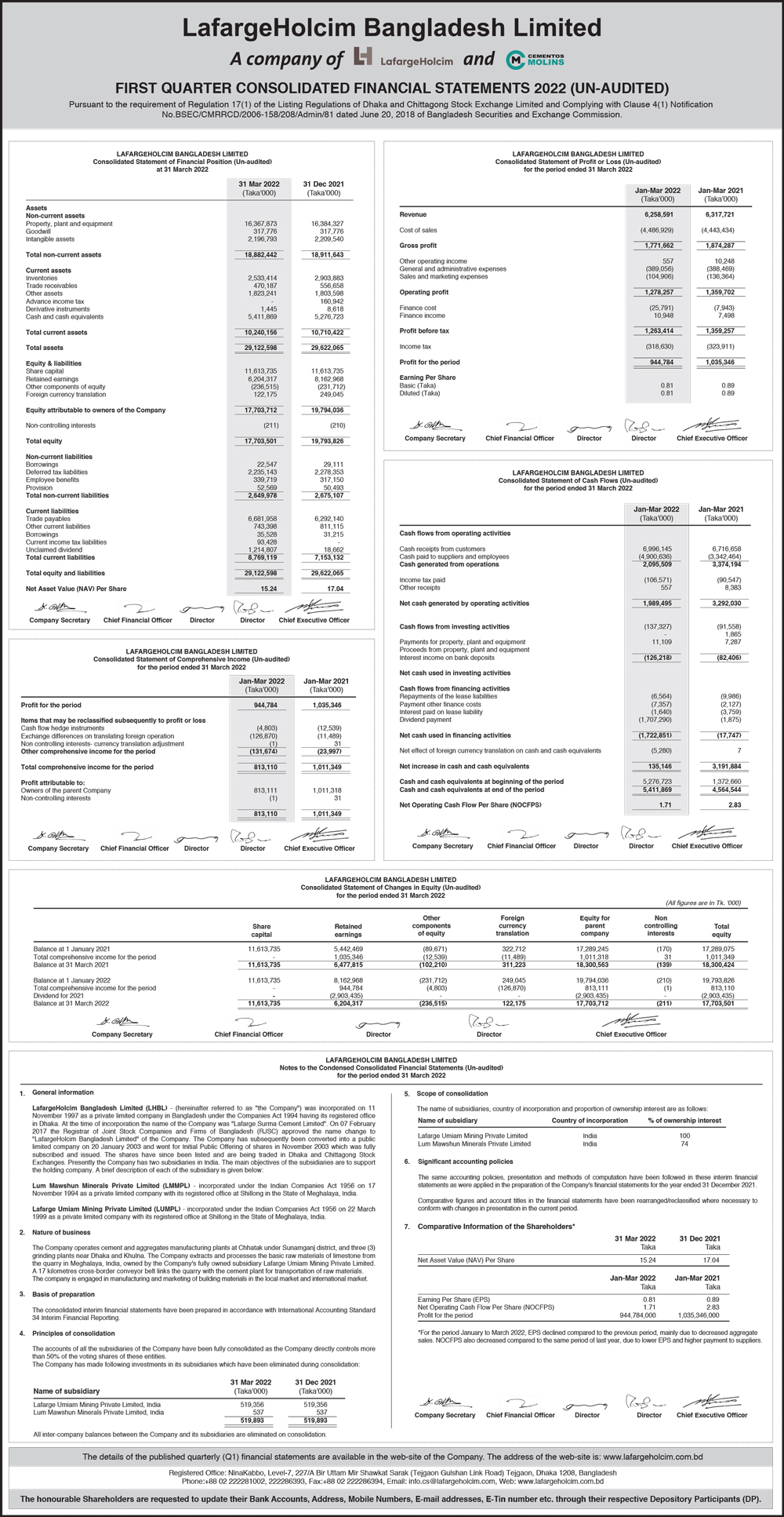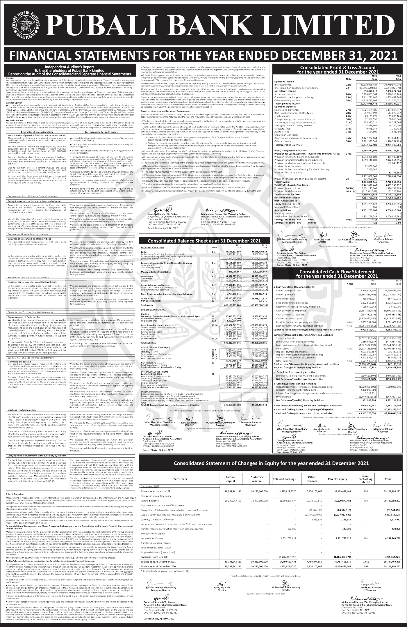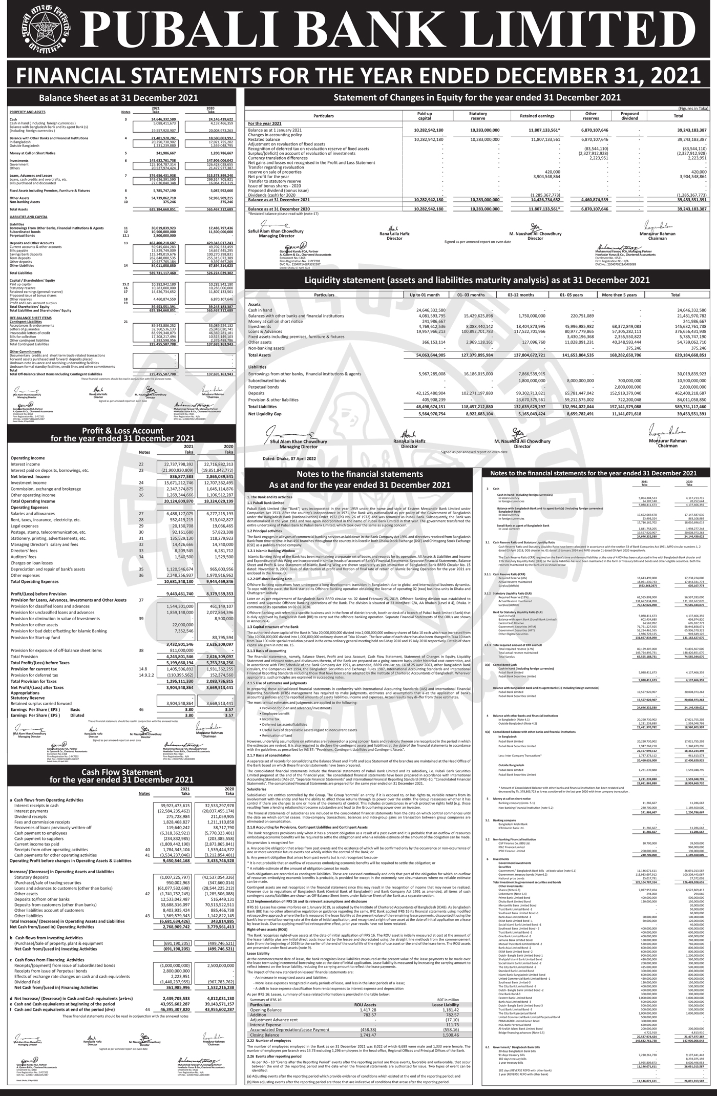 Half Yearly Financial Statements of Pubali Bank PLC.