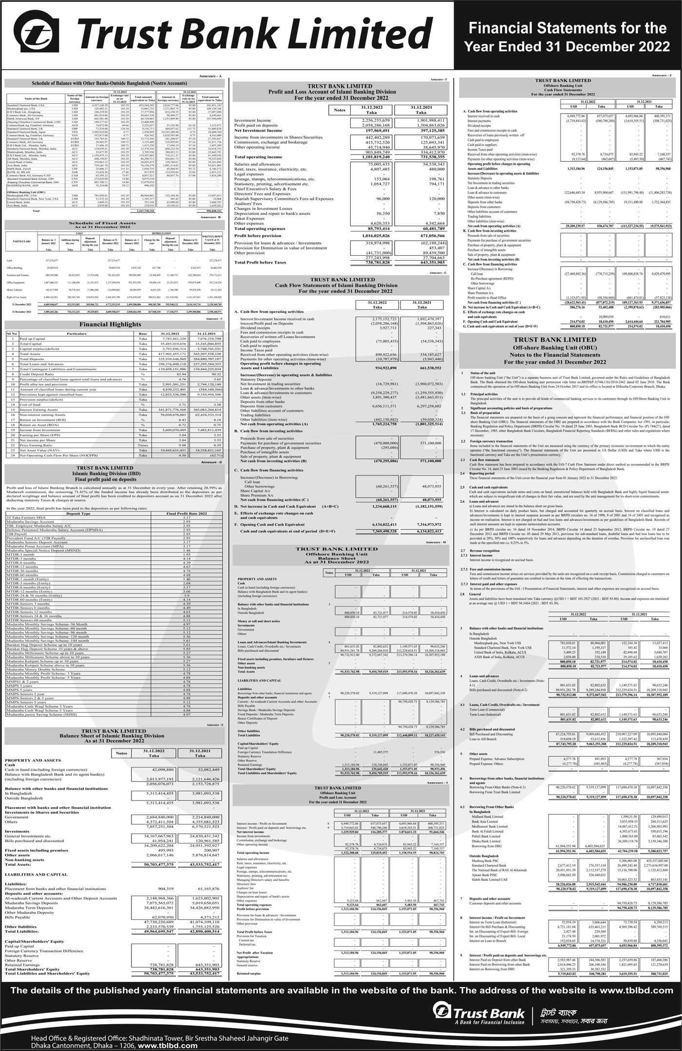 Half-Yearly Financial Statements (Un-audited) of Trust Bank Limited