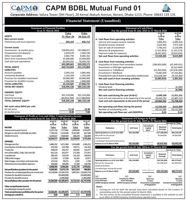 Financial Statements (Un-audited) of CAPM BDBL Mutual Fund 01