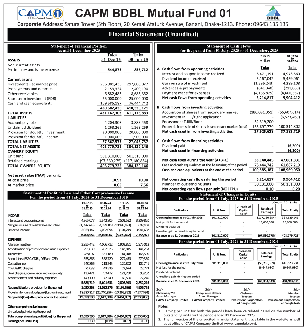 Half Yearly Financial Statements of CAPM BDBL Mutual Fund 01