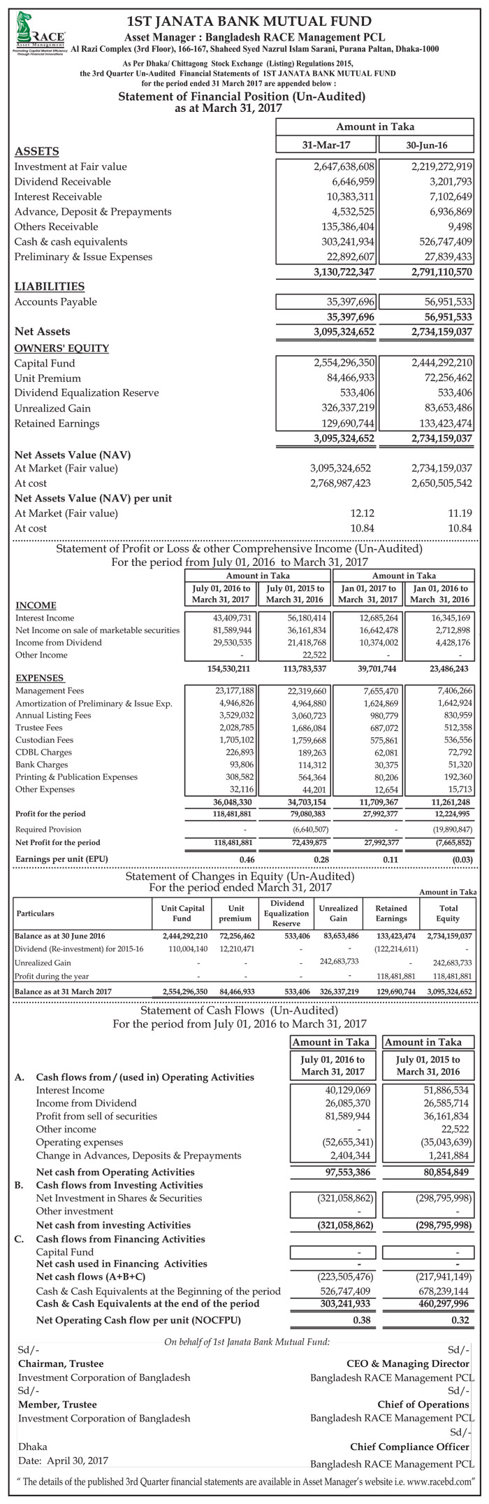First Janata Bank Mutual Fund 3Q Financial Statements