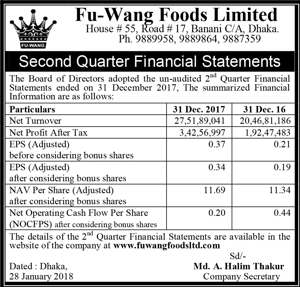 Notice of the 26th AGM of Fu-Wang Foods Limited