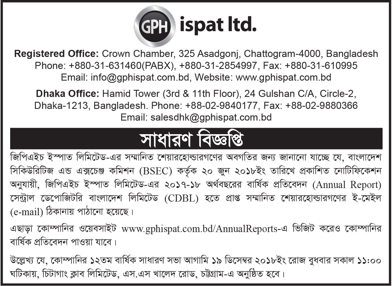 General Notice to the Honorable Shareholder of GPH Ispat Ltd.