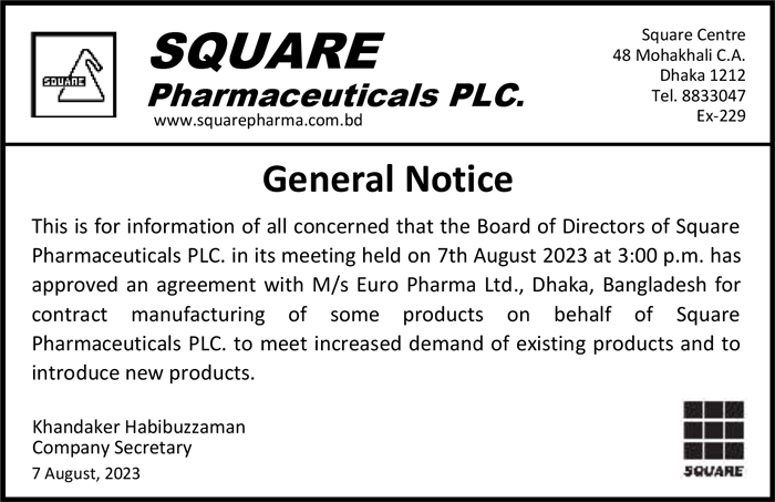 58th AGM Notice of Square Pharmaceuticals PLC.
