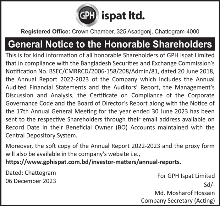 General Notice to the Honorable Shareholder of GPH Ispat Ltd.