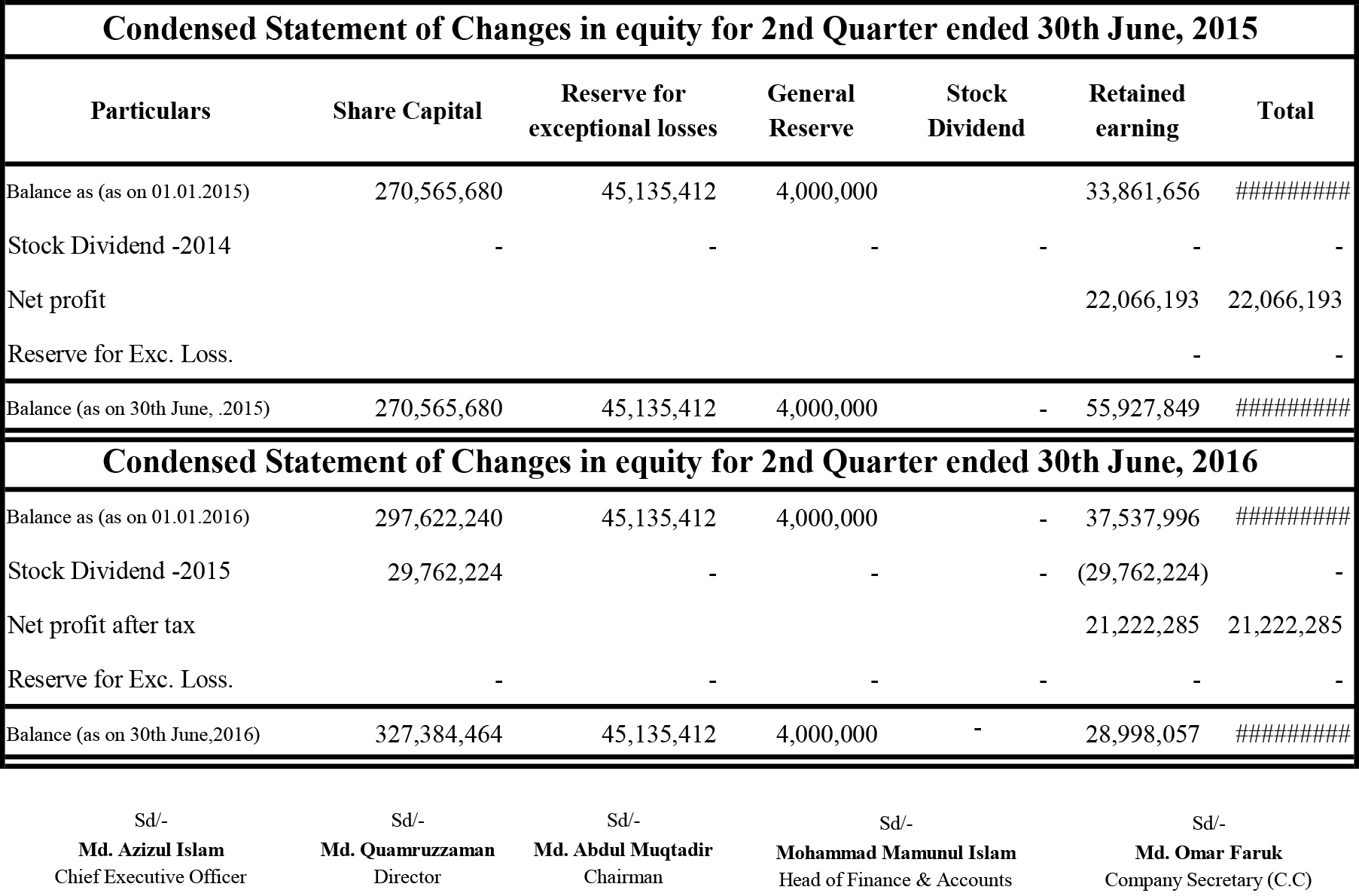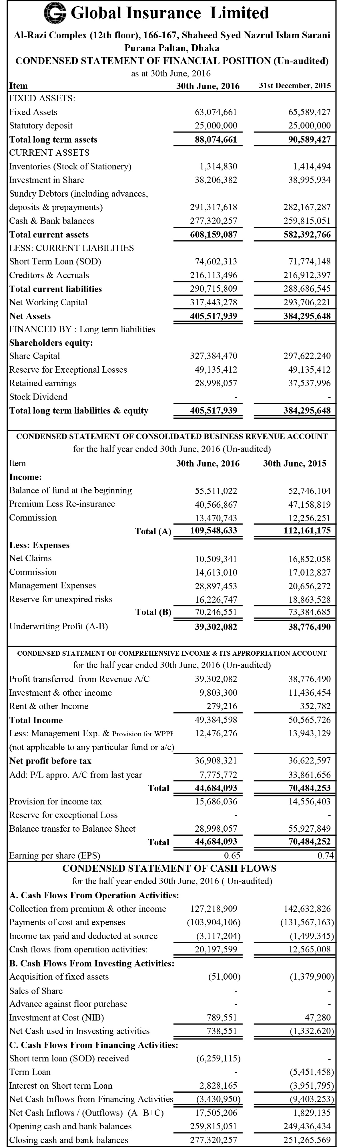 Global Insurance Limited Condensed Statement Of Financial Position