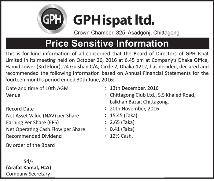 General Notice to the Honorable Shareholder of GPH Ispat Ltd.