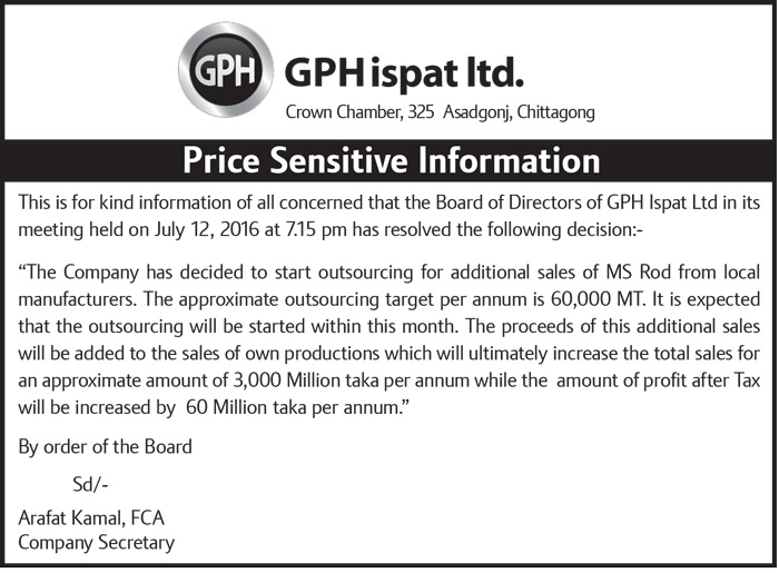 This is for kind information of all concerned that the Board of Directors of GPH Ispat Ltd in its