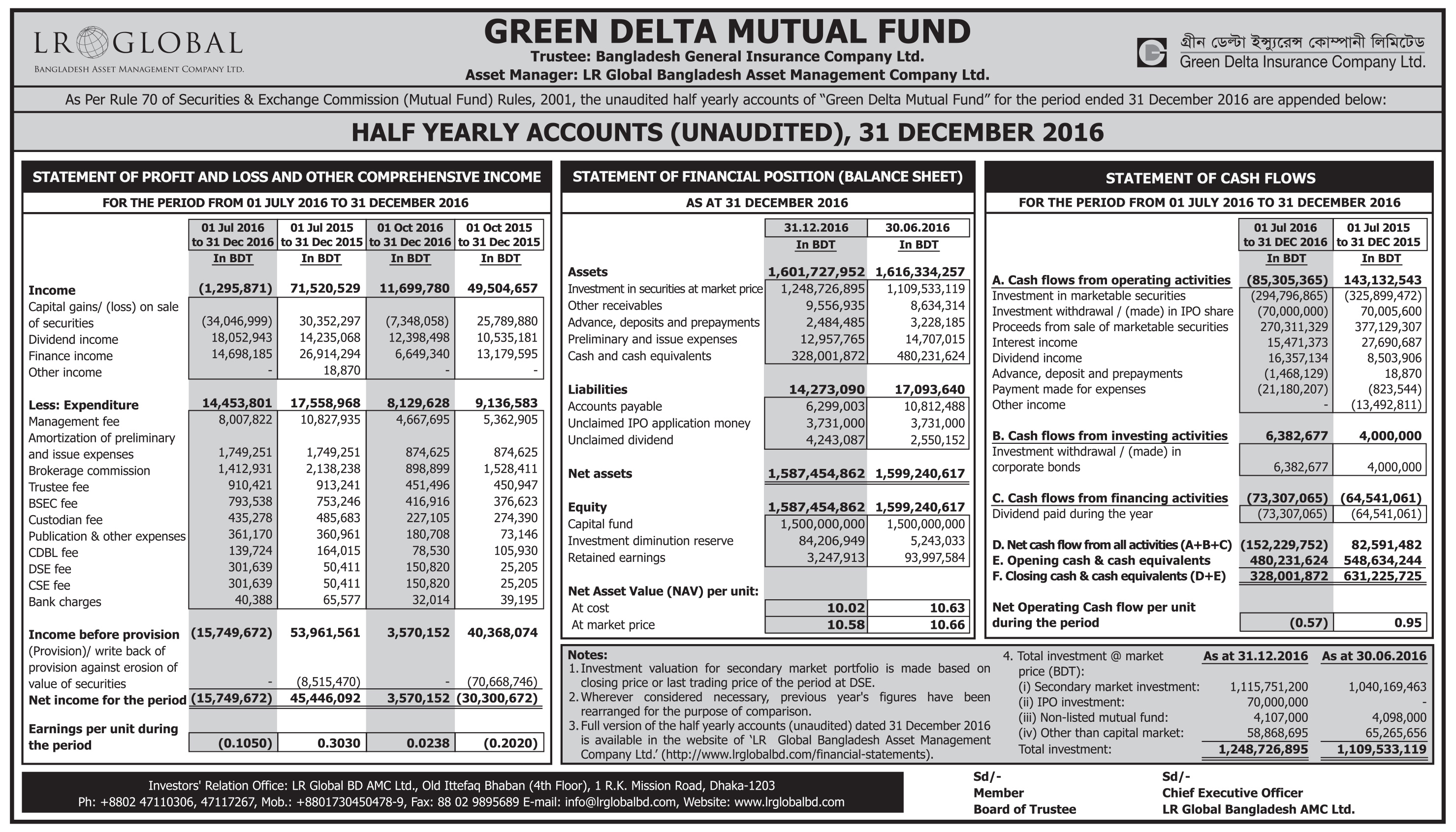 Green Delta Mutual Fund Half Yearly Accounts