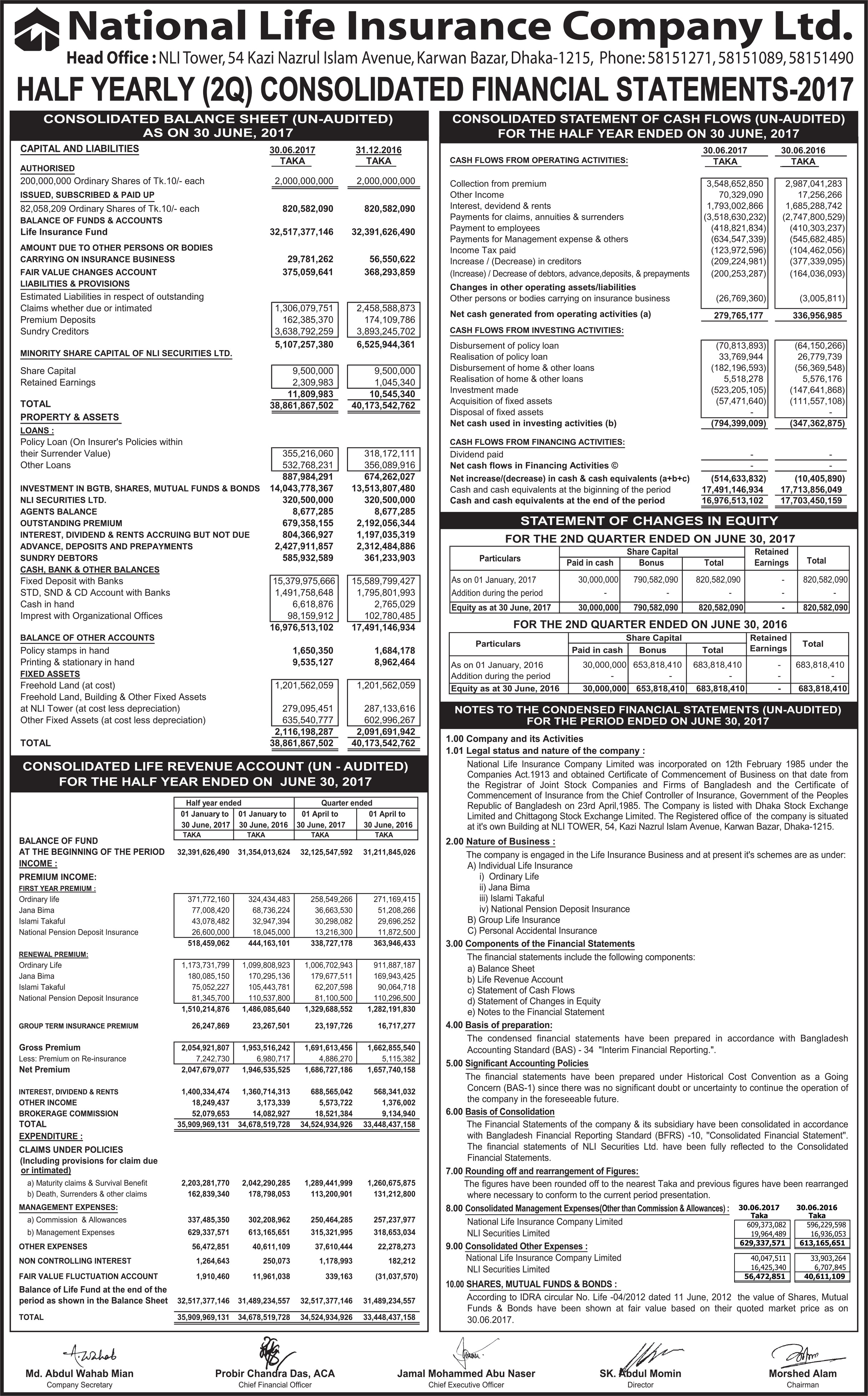 Half Yearly Consolidated Financial Statement of National Life Insurance Co. Ltd.