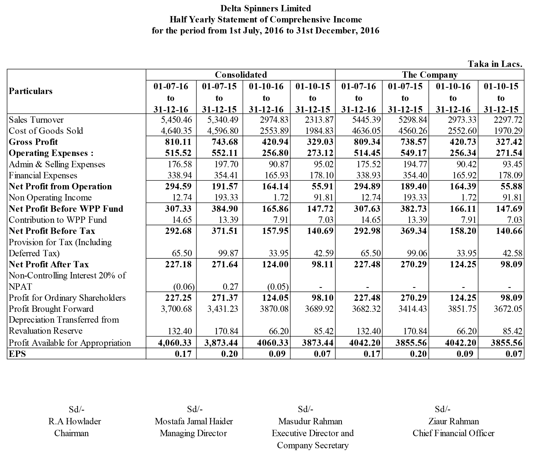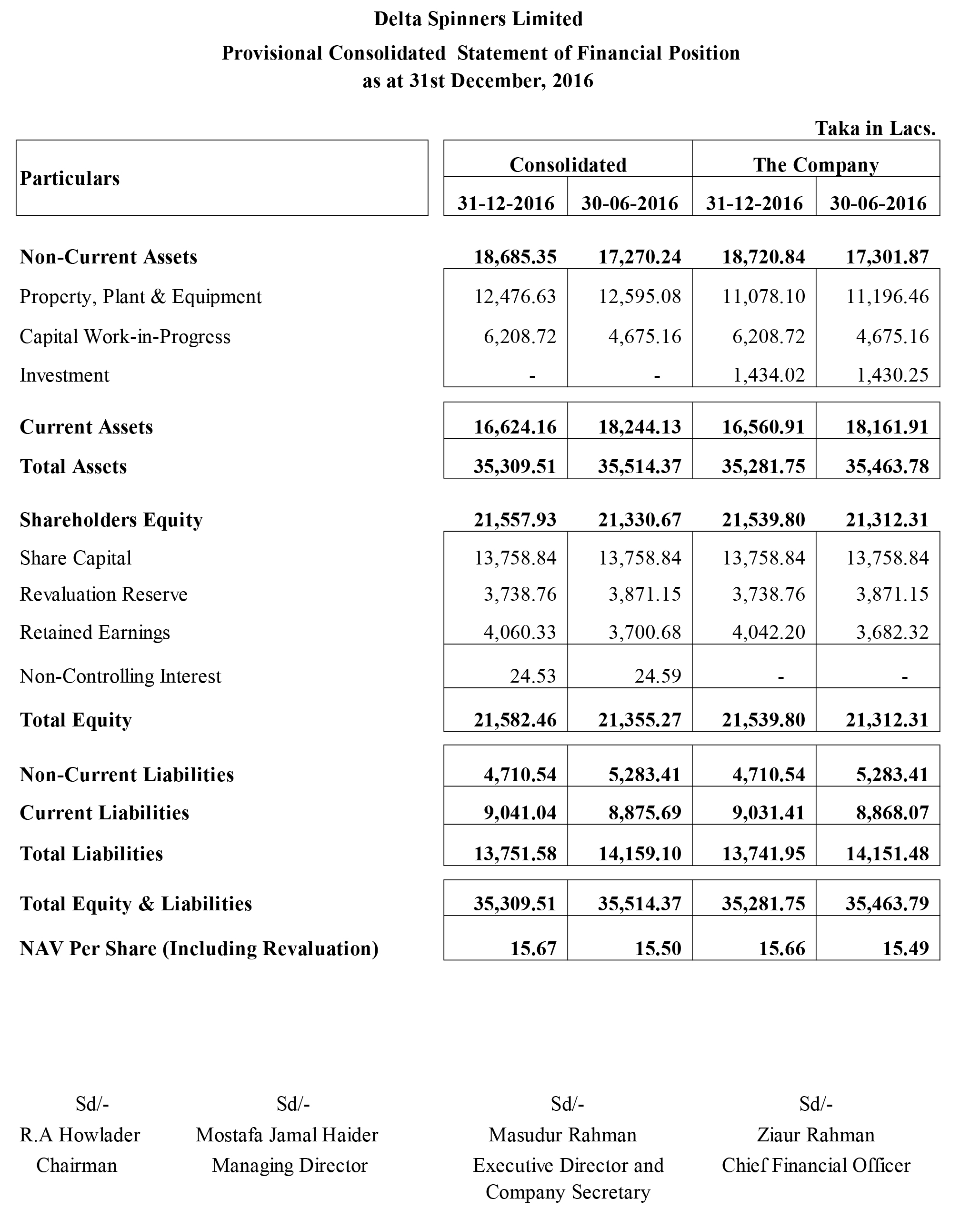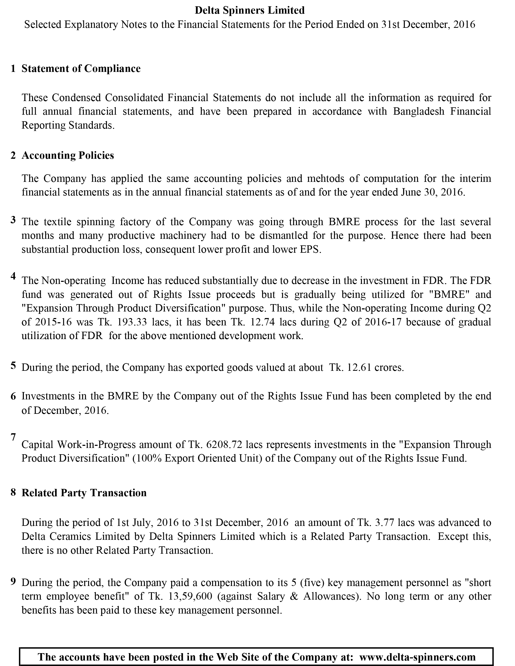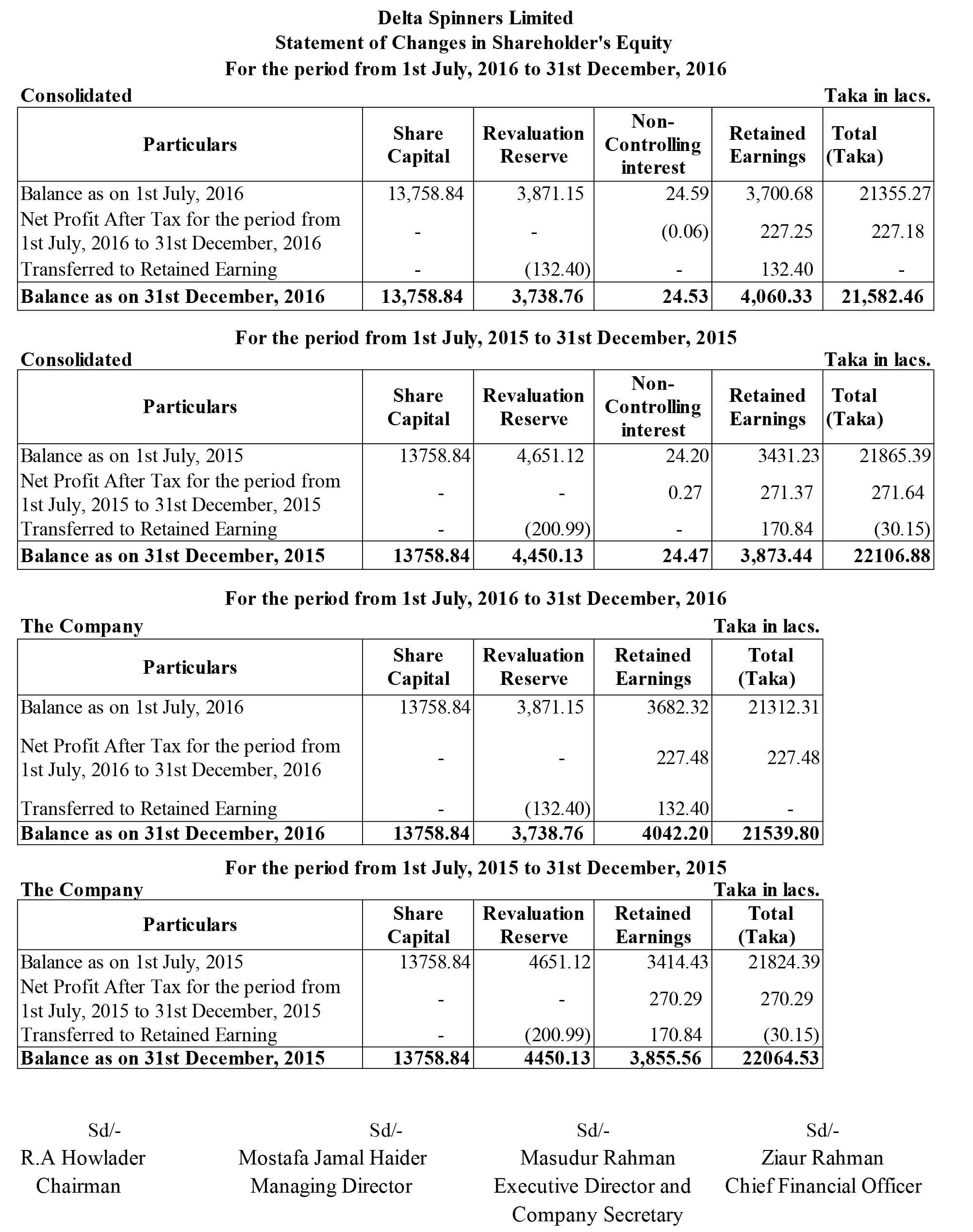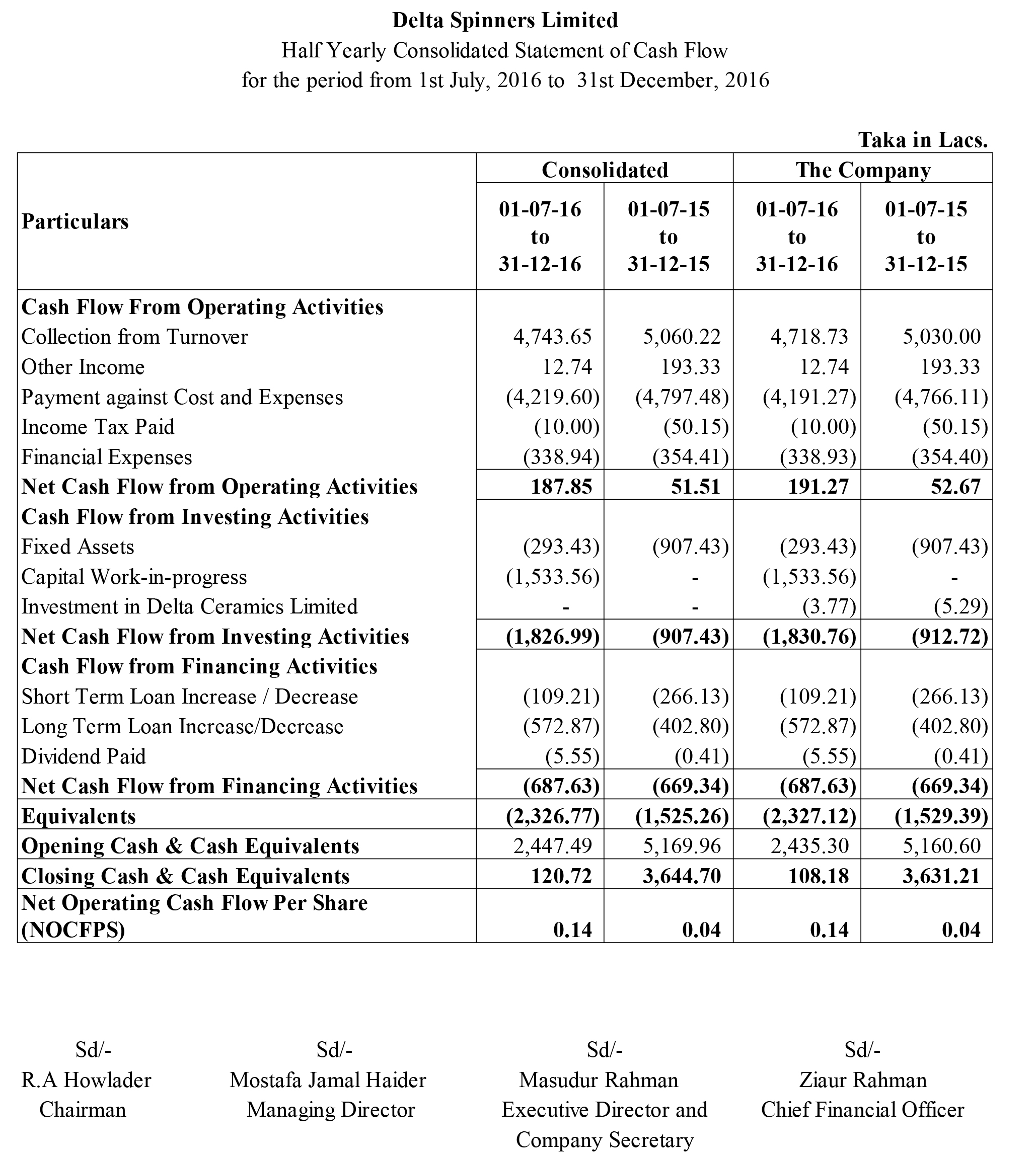 Half Yearly Consolidated Statement of Delta Spinners Limited