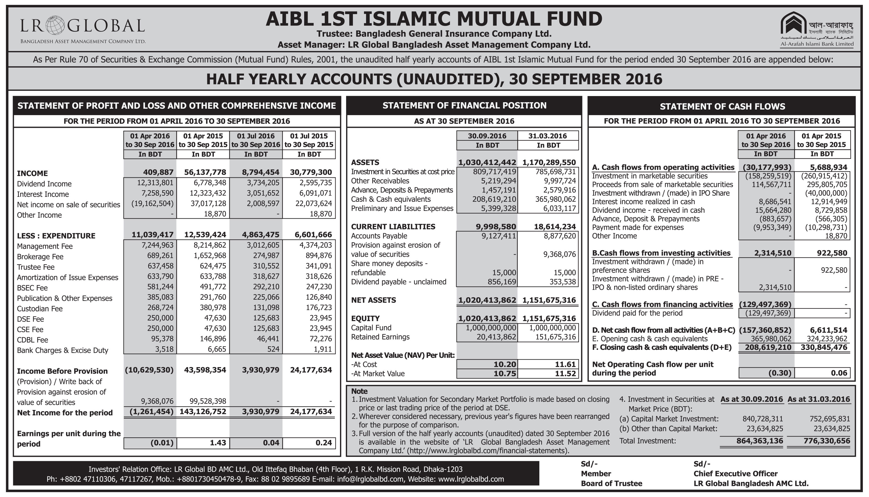 Half Yearly Financial Statements (unaudited) of AIBL 1st Islamic Mutual Fund