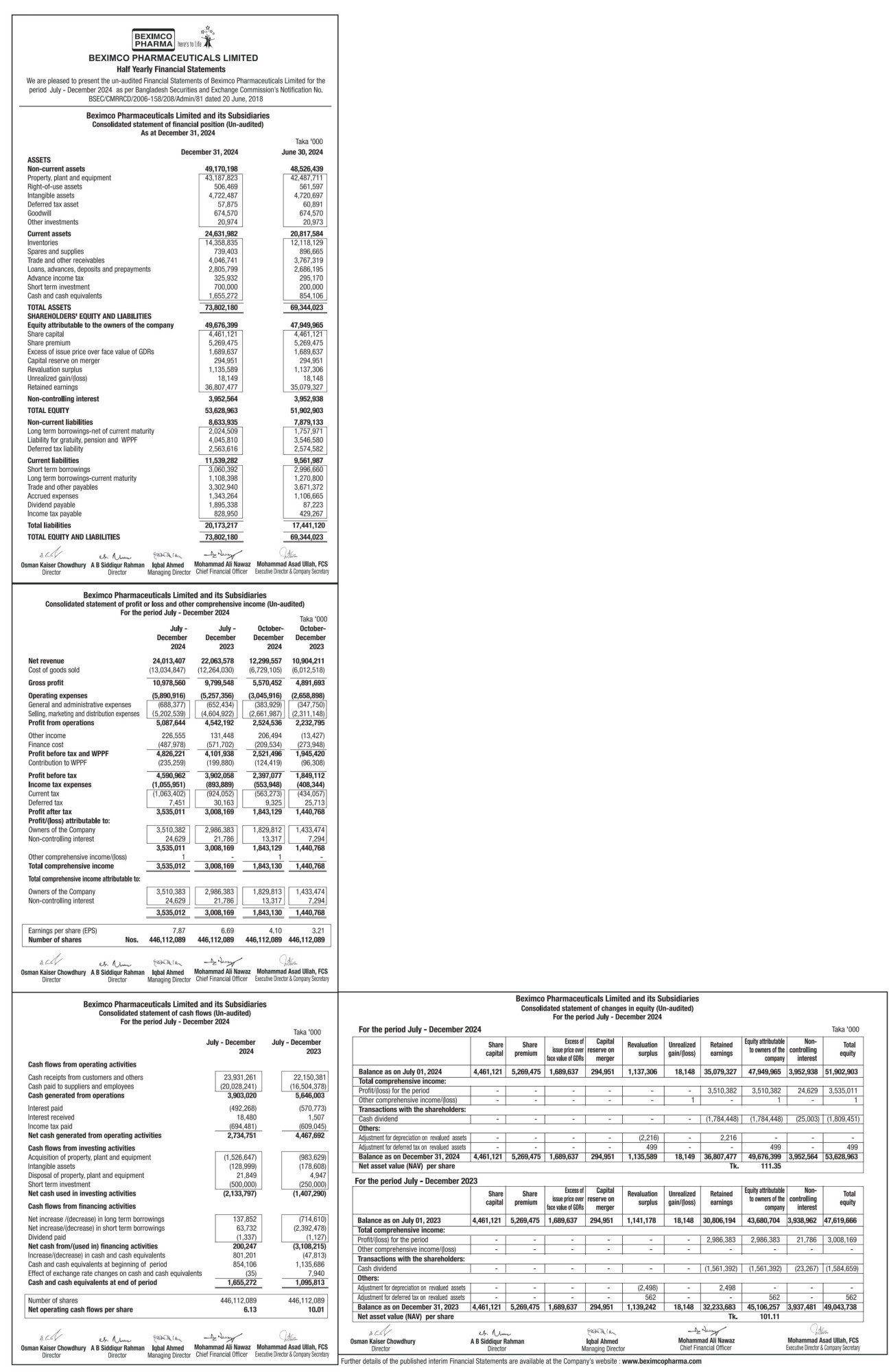 Half Yearly Financial Statement of Beximco Pharmaceuticals Ltd.