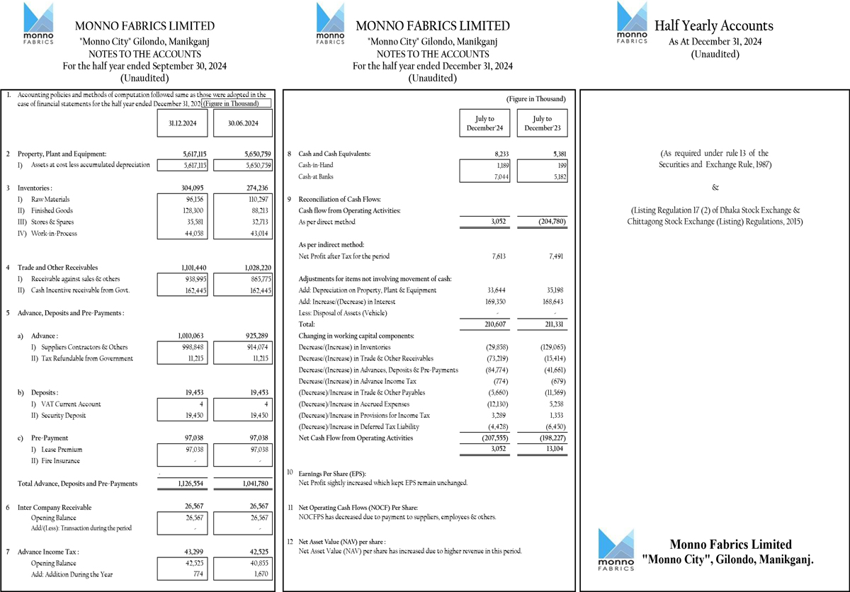 Half Yearly Financial Statement (Un-audited) of Monno Fabrics Ltd.