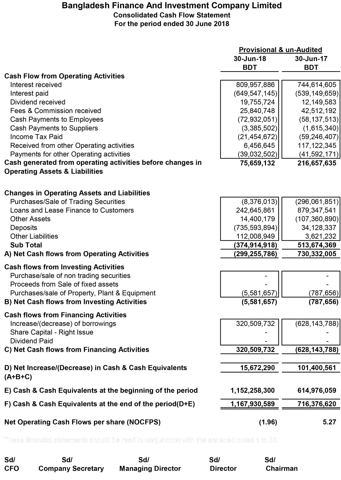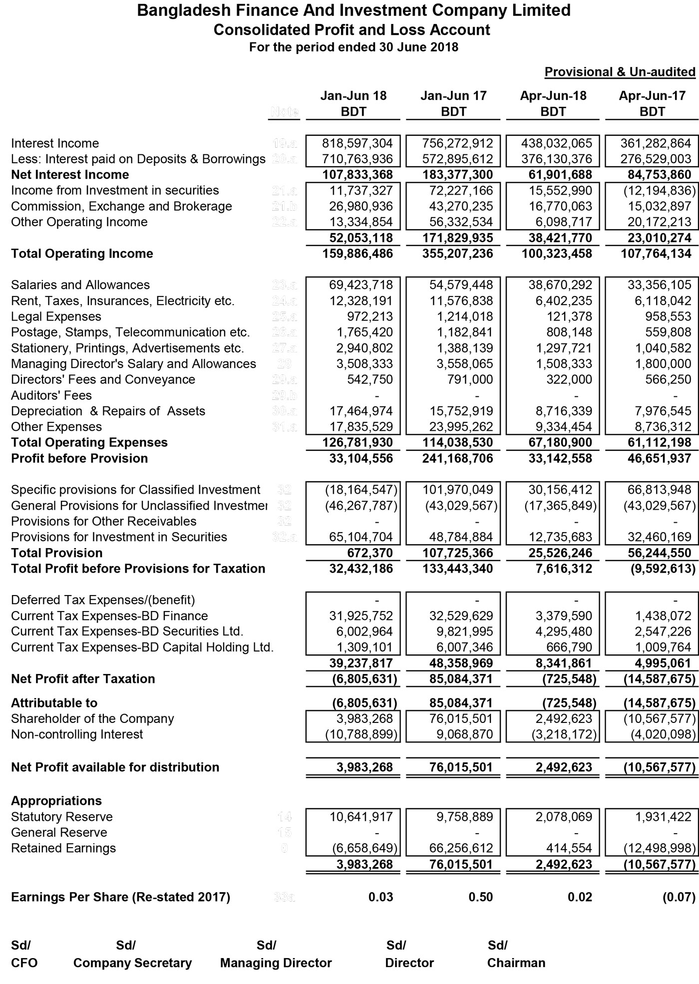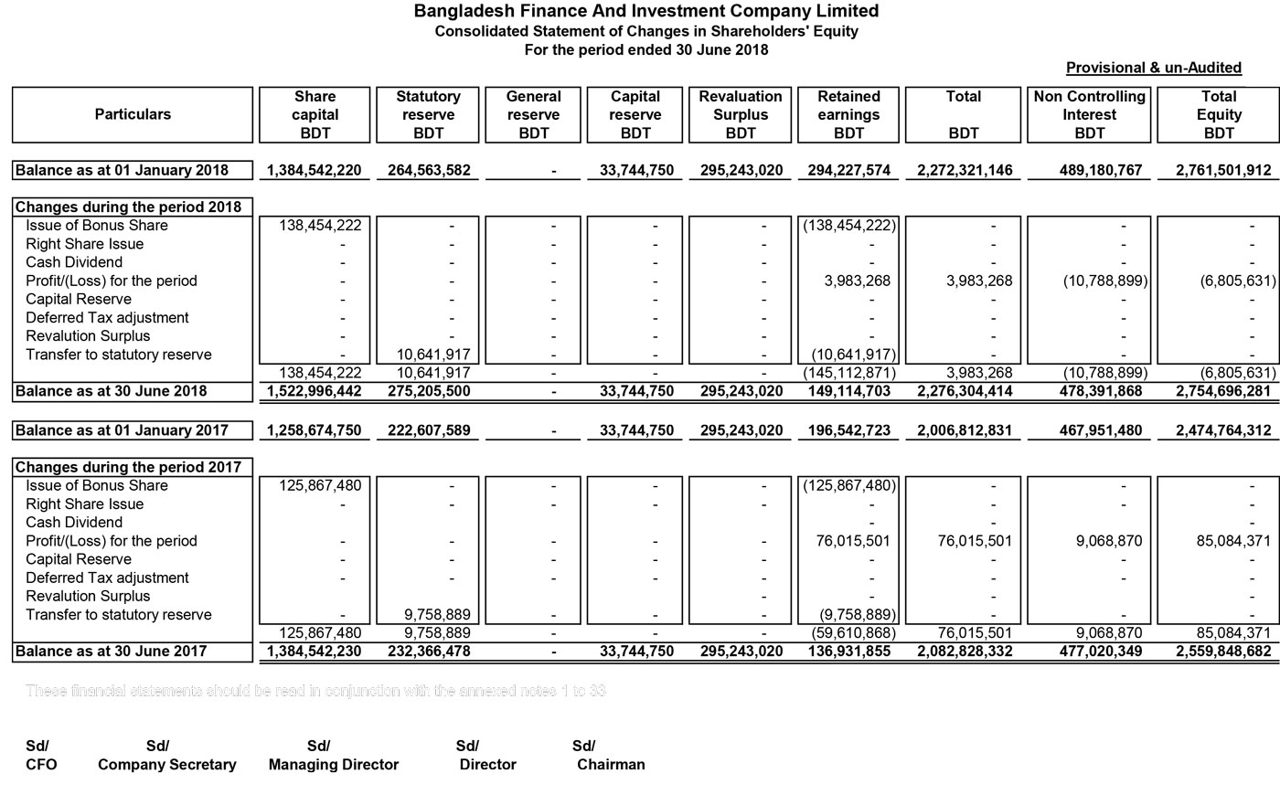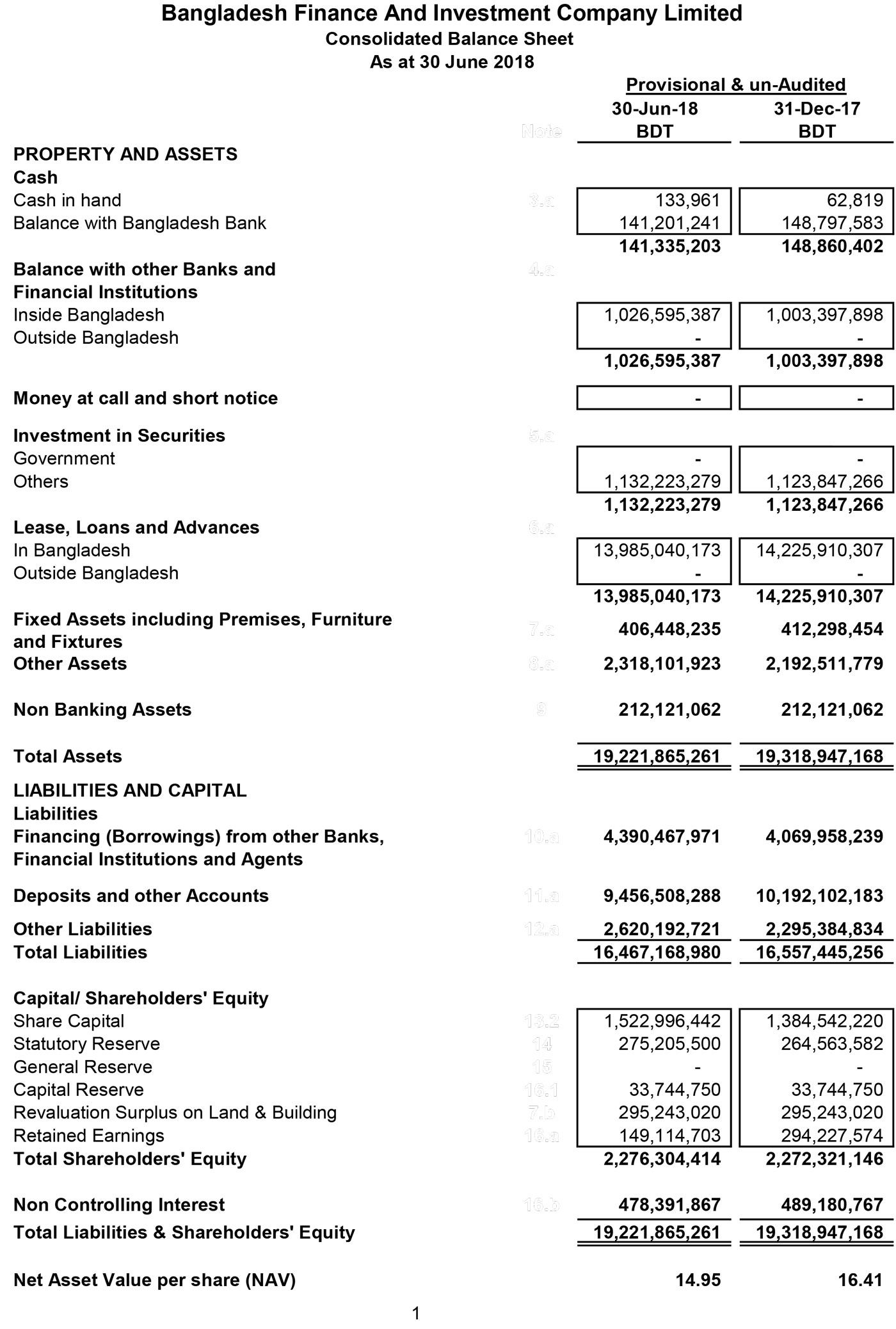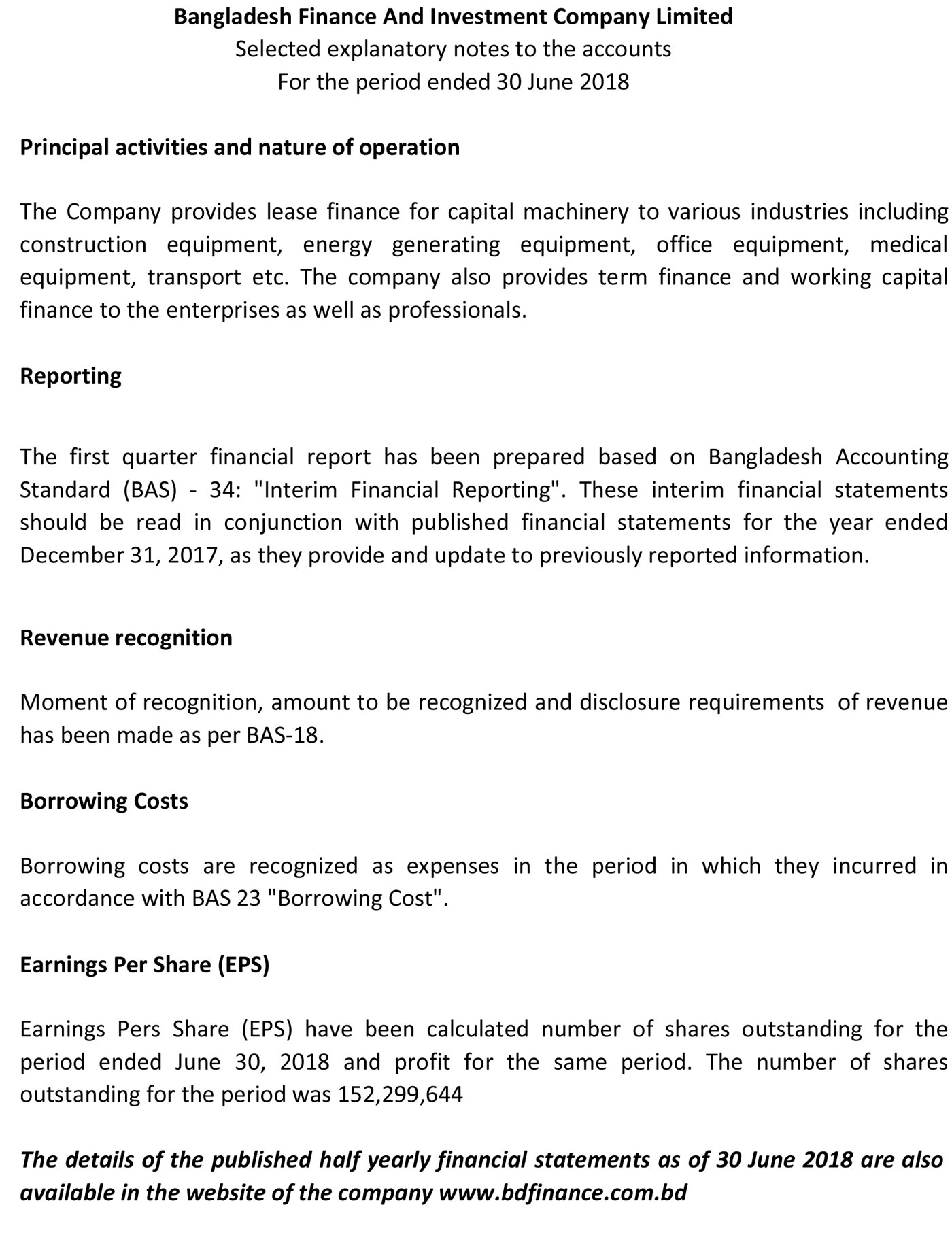 Half Yearly Financial Statements of Bangladesh Finance and Investment Co.Ltd