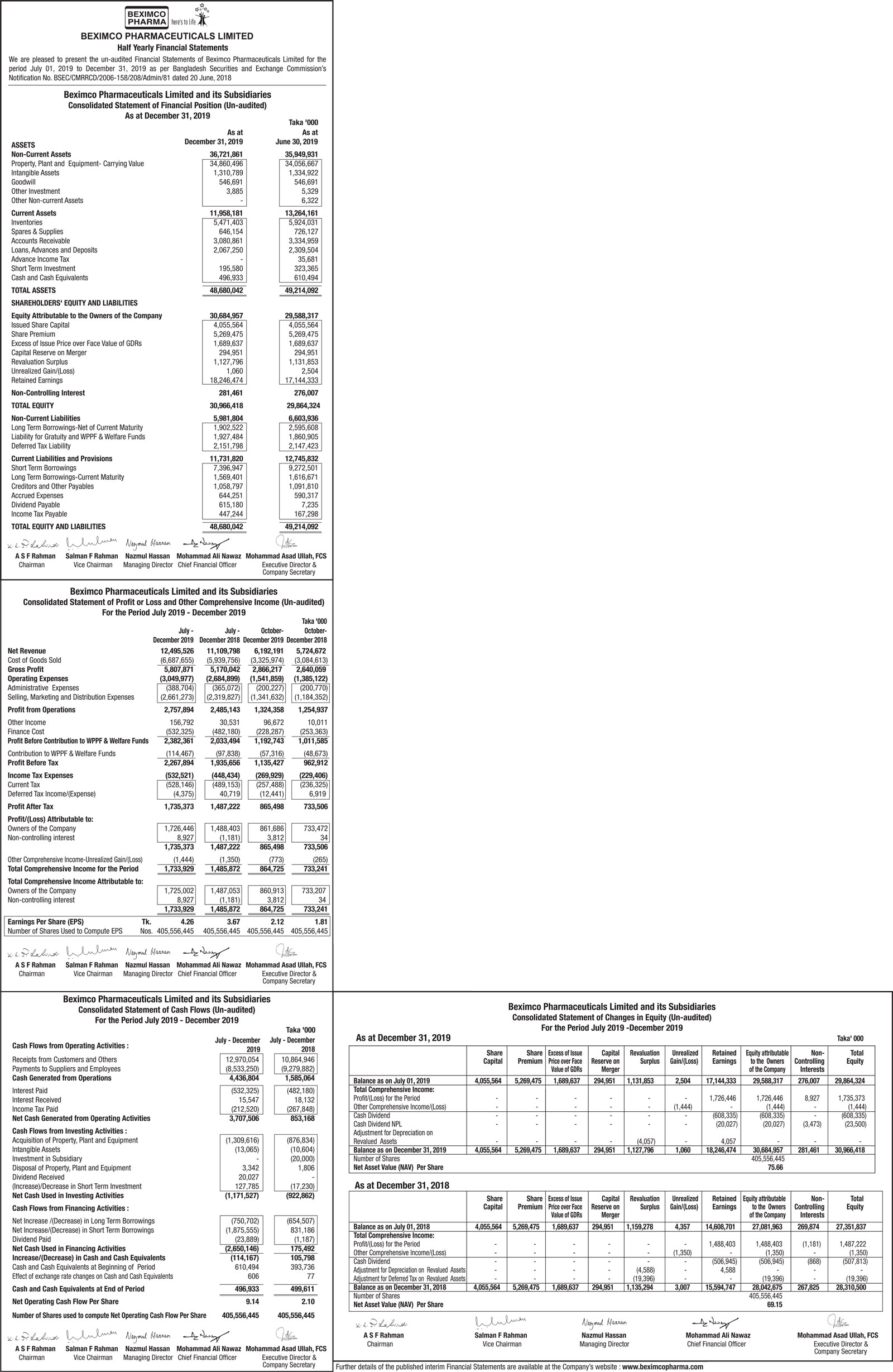 Half Yearly Financial Statements of Beximco Pharmaceuticals Ltd.