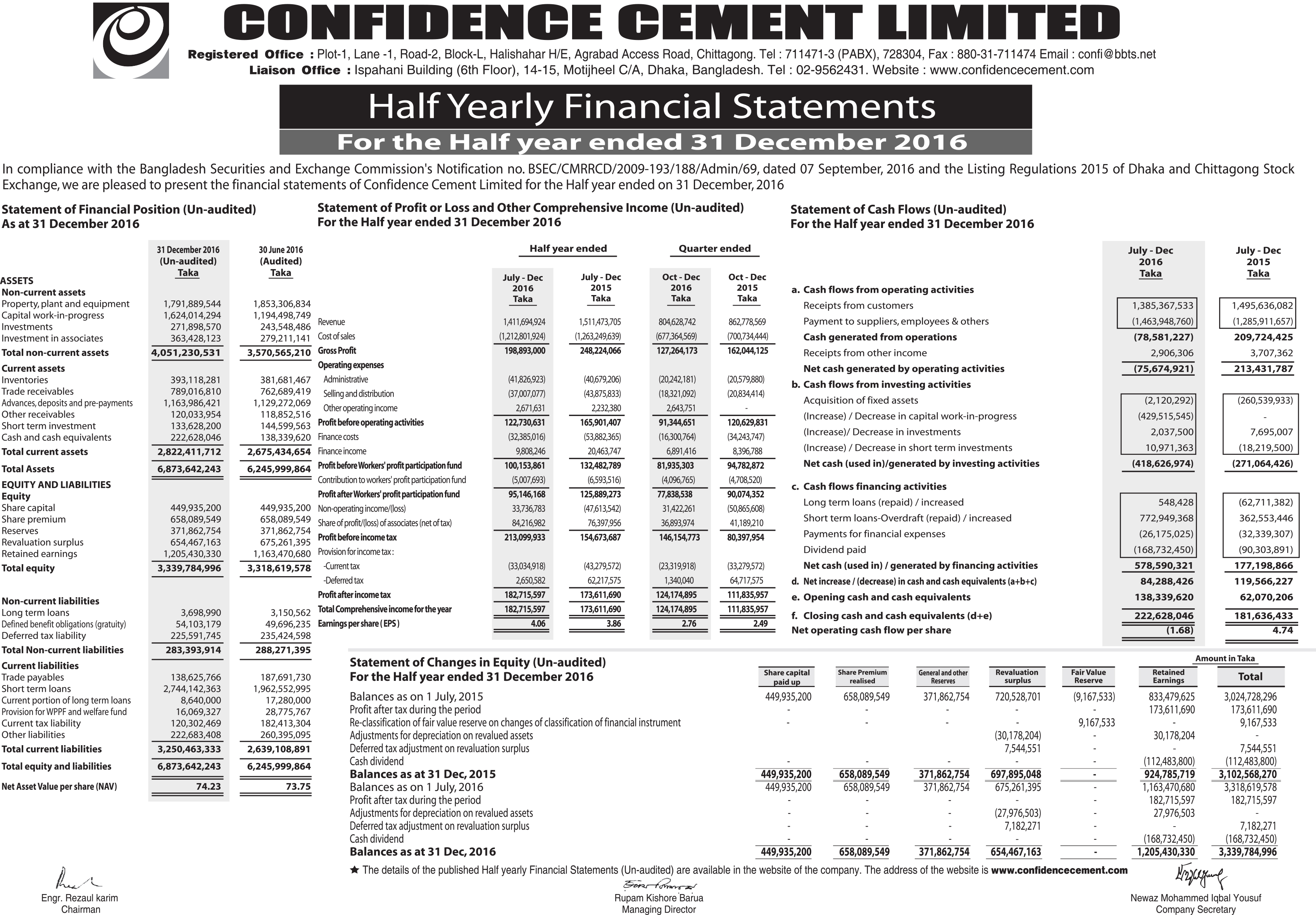 Half Yearly Financial Statements (Un-audited) Confidence Cement Linited