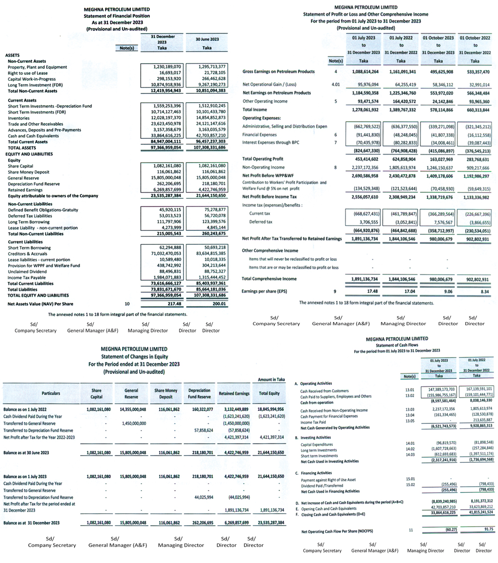 Half Yearly Financial Statements of Meghna Petroleum Limited
