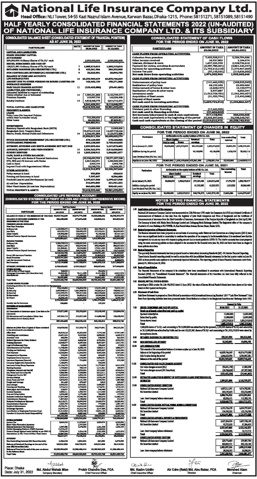 Half Yearly Financial Statements of National Life Insurance company Ltd.