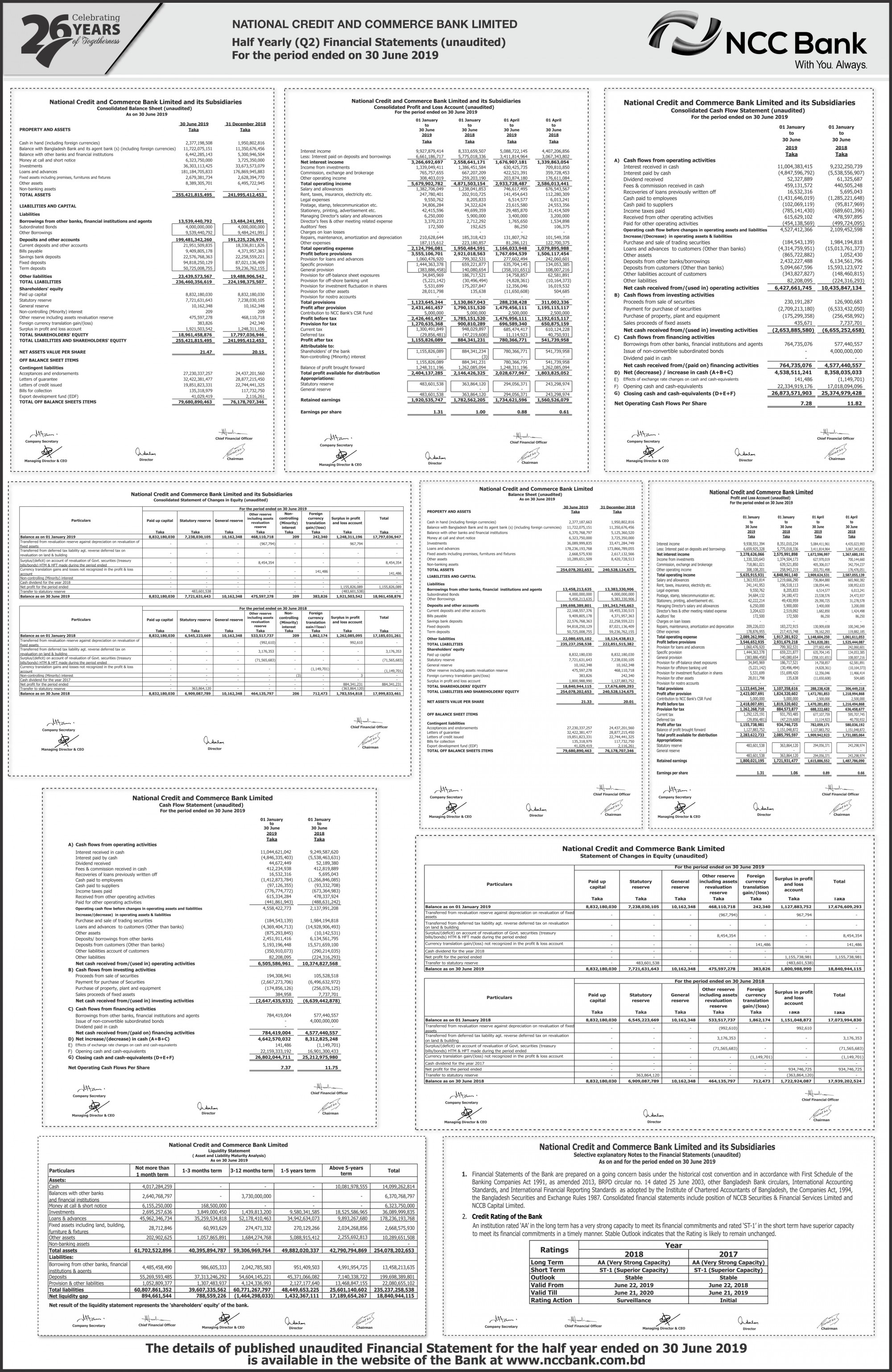 Half Yearly Financial Statements of NCC Bank