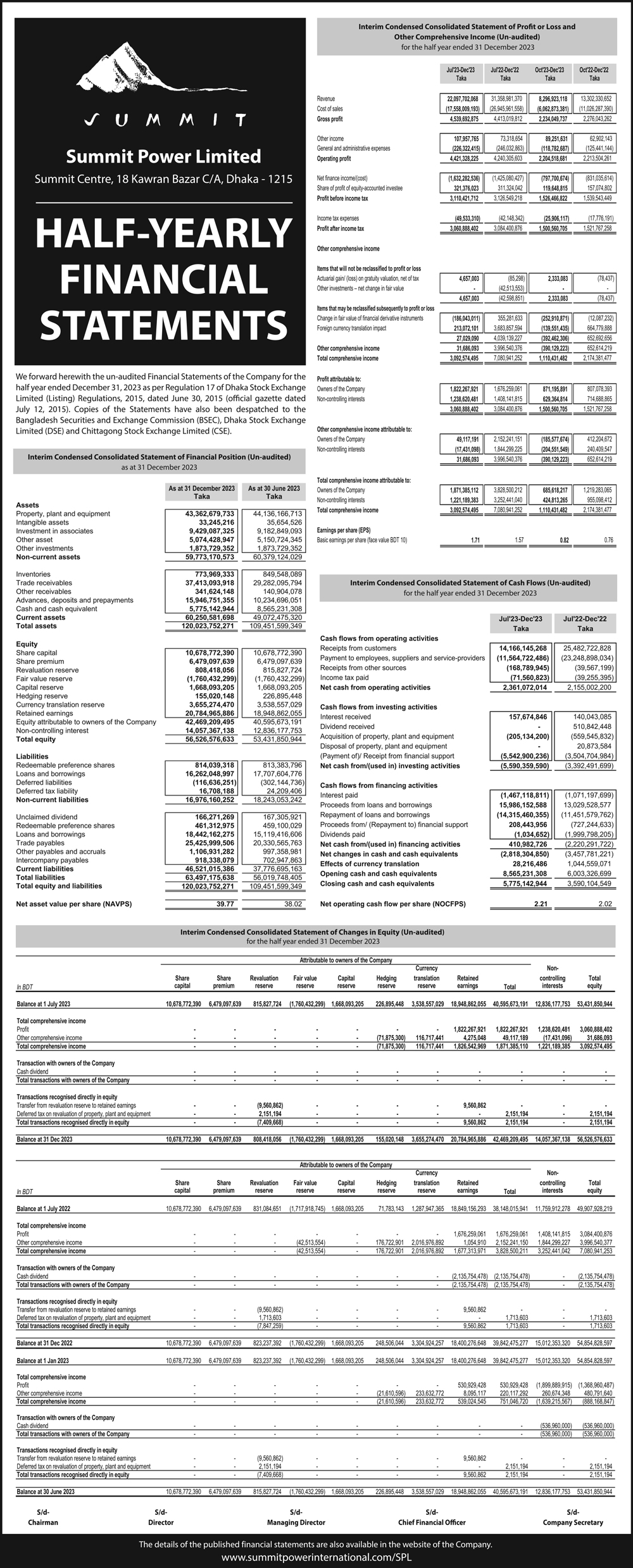 Half Yearly Financial Statements of Summit Power Limited