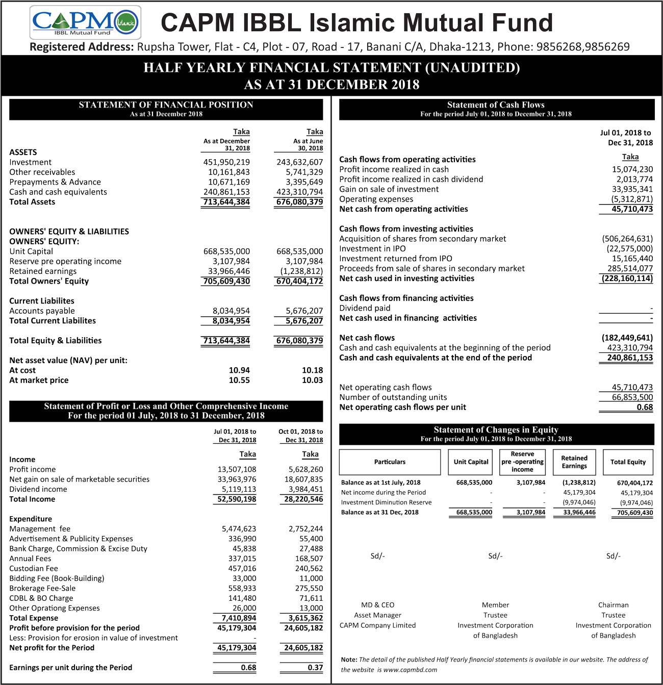 Half Yearly Financial Statements (Un-audited) of CAPM IBBL Islamic Mutual Fund