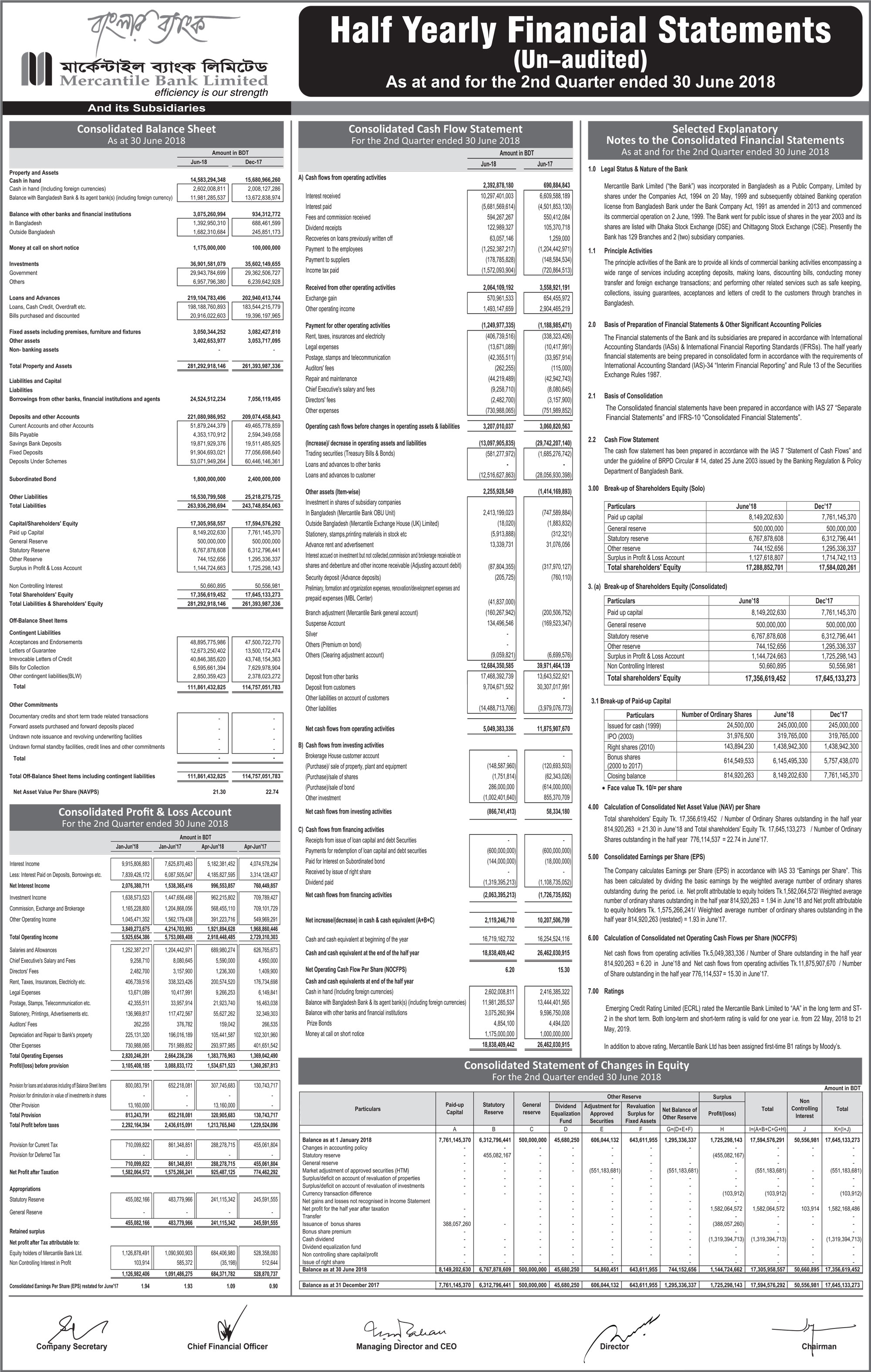 Half Yearly Financial Statements (Un-audited) of Mercantile Bank Ltd