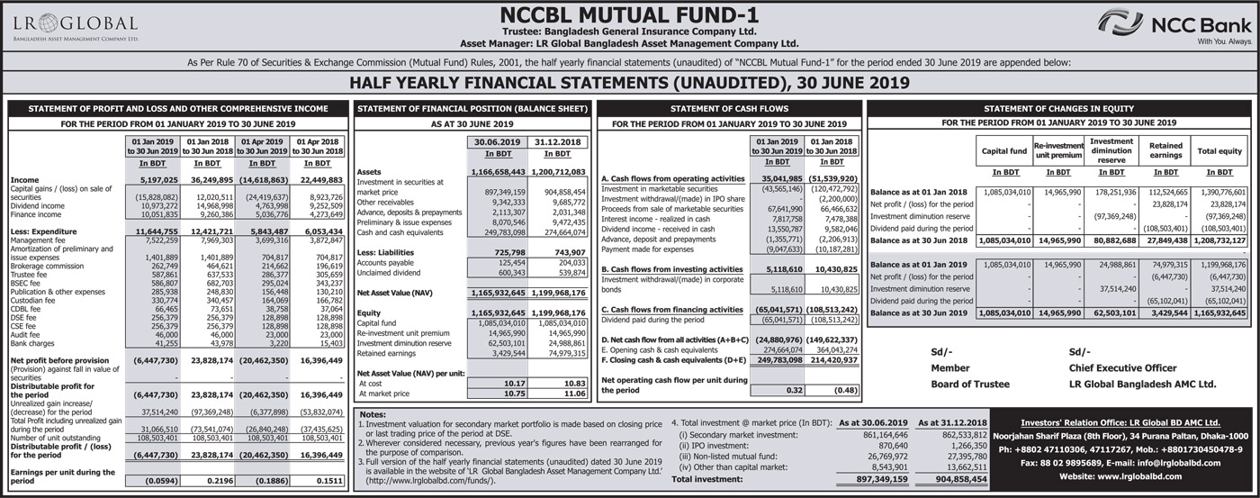 Half Yearly Financial Statements (Unaudited) of NCCBL Mutual Fund-1