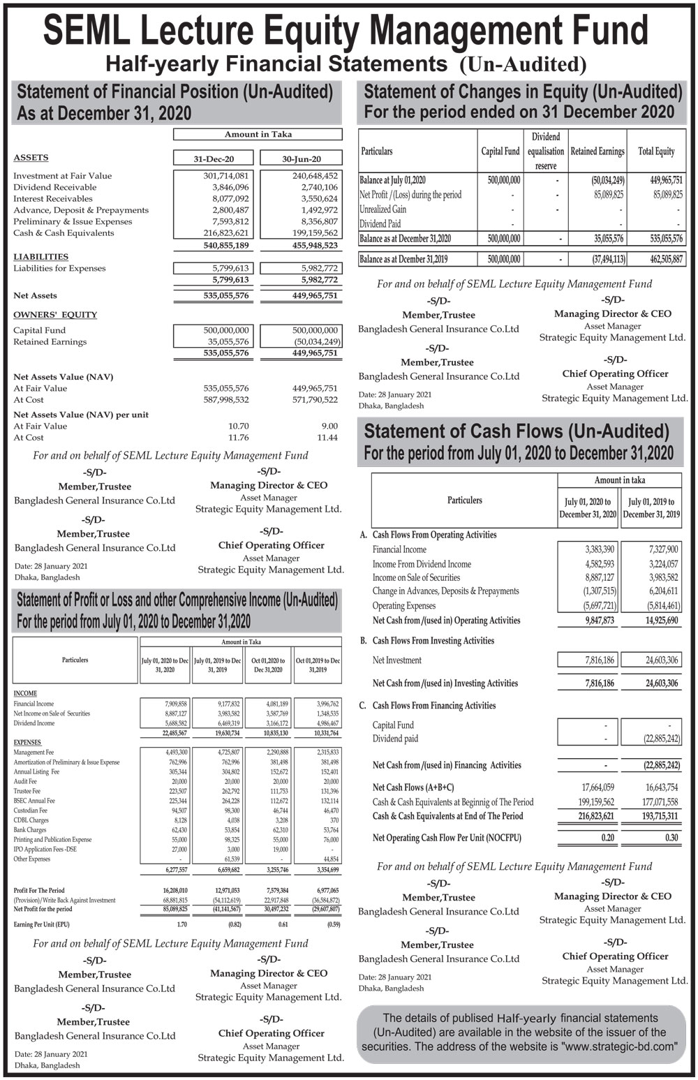 Half Yearly Financial Statements (Un-audited) of SEML Lecture Equity Management Fund