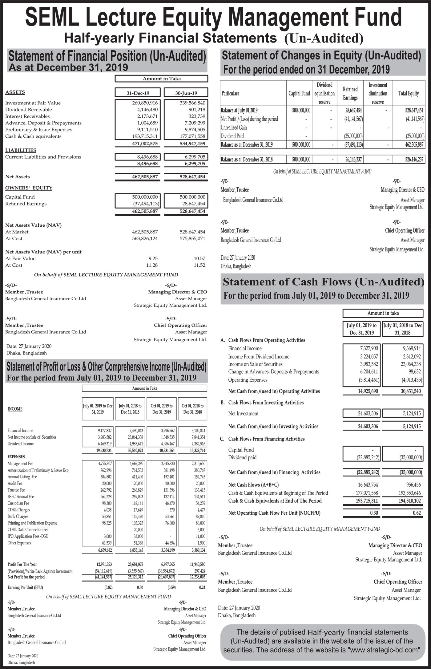 Quarterly (Q3) Financial Statements Of SEML Lecture Equity Management Fund