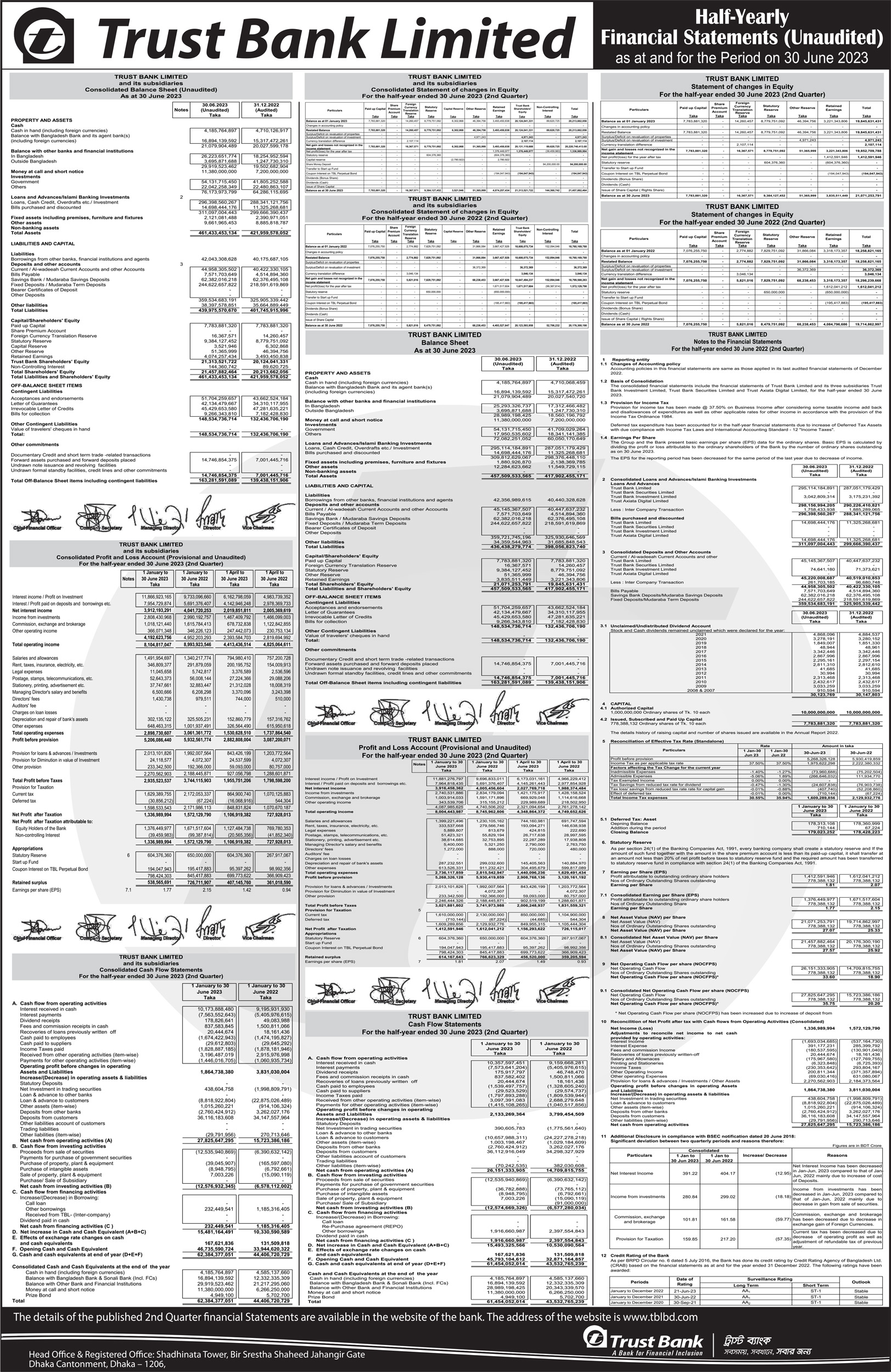 Q2 Unaudited Financial Statements of Trust Bank Limited