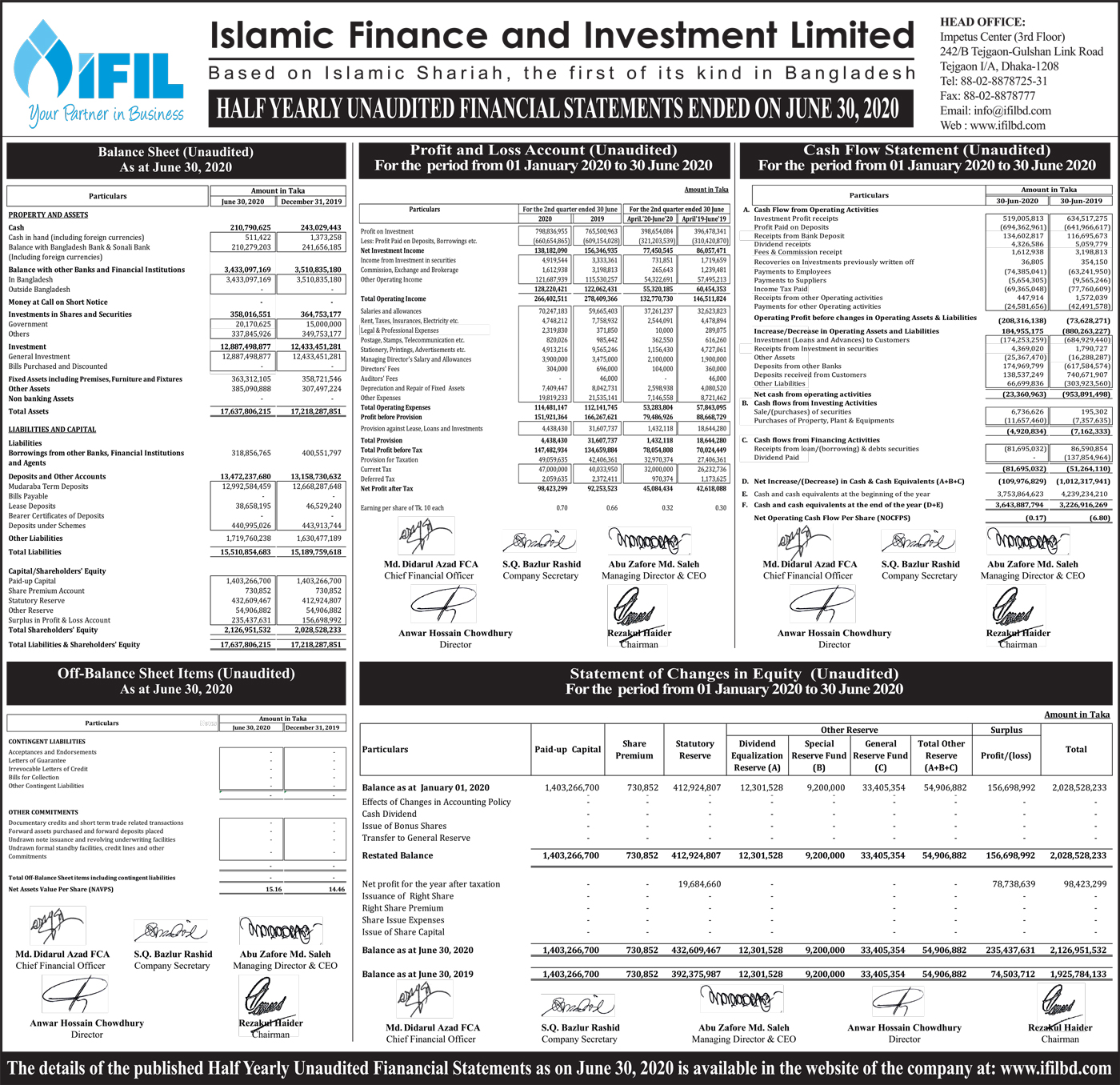 Q2 Un-audited Financial Statements of Islamic Finance & Investment Ltd