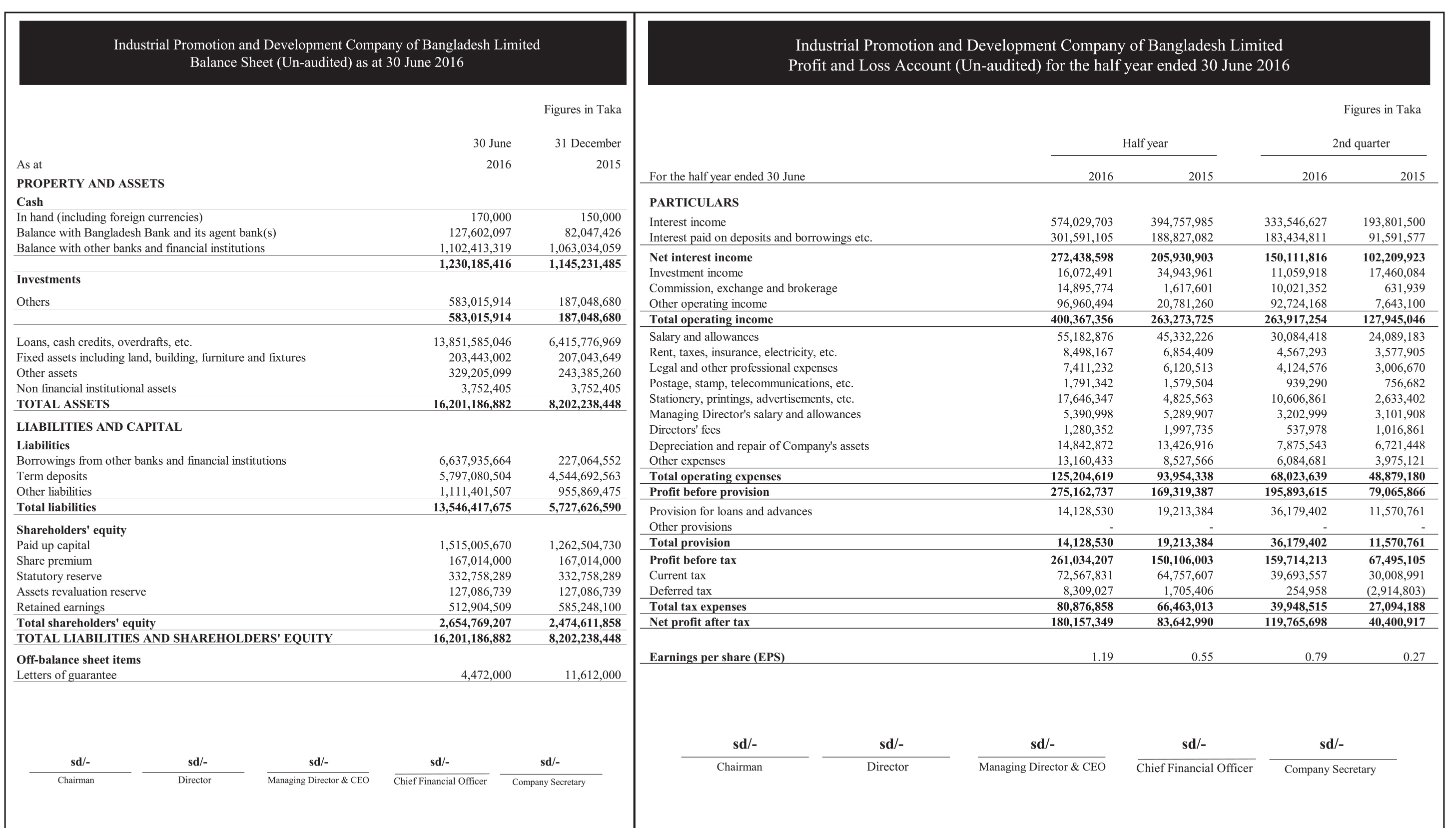 2Q Financial Statements (Un-audited) of IPDC Finance Limited