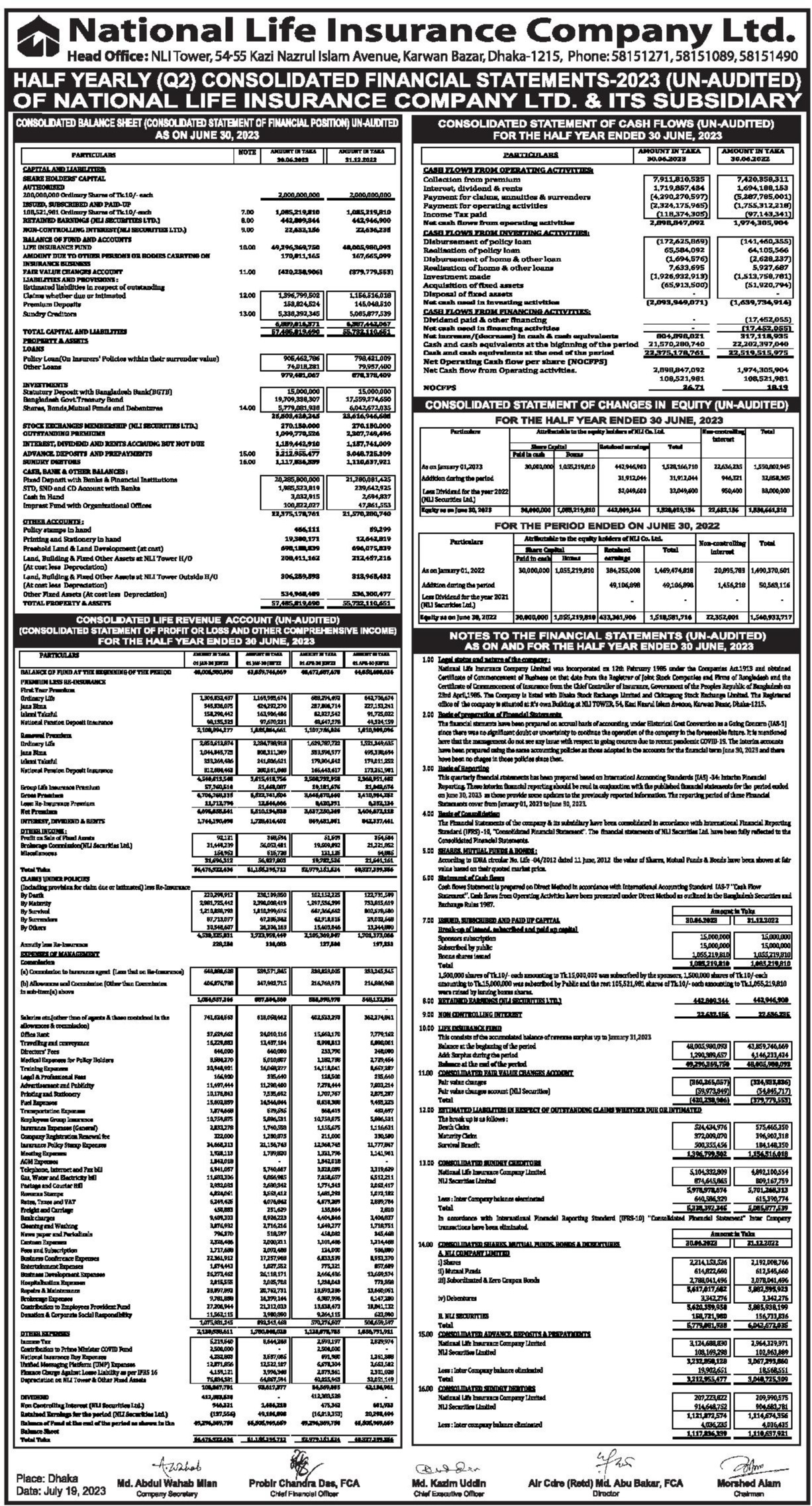 Half Yearly (Q2) Consolidated Financial Statement Of National Life Insurance Co. Ltd.