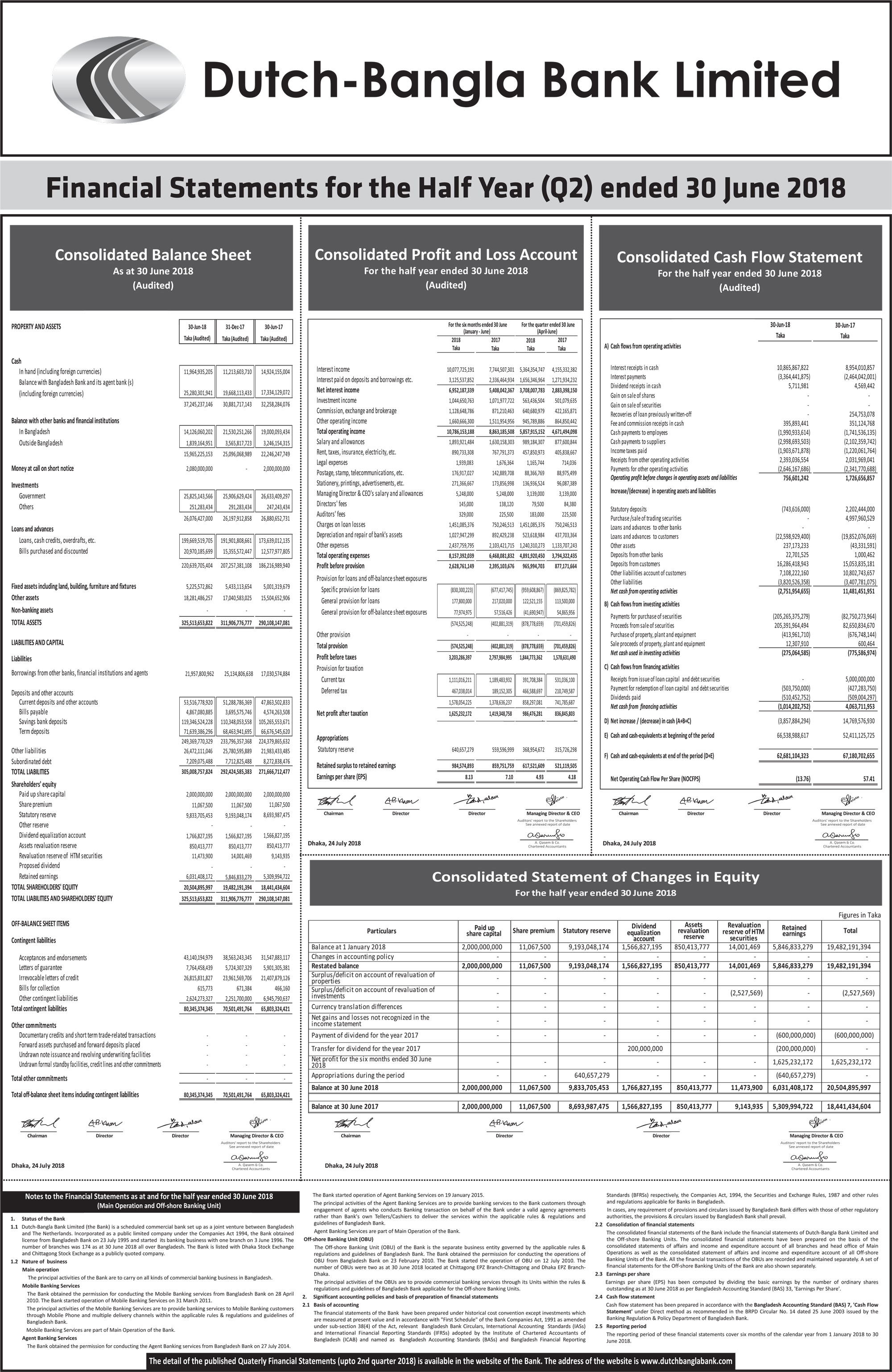 Half Yearly (Q2) Financial Statements of Dutch-Bangla Bank Limited
