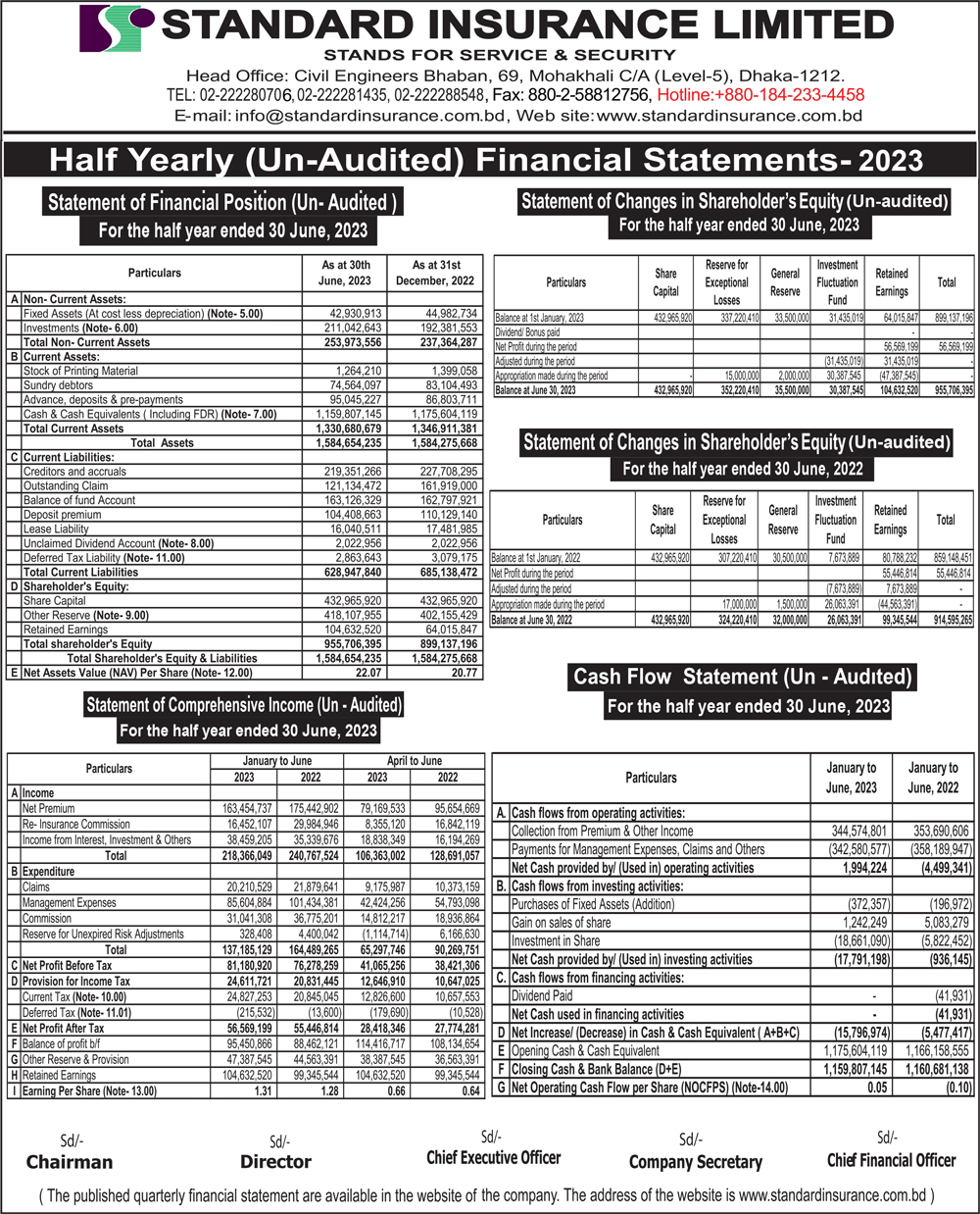 Half Yearly (Un-audited) Financial of Standard Insurance Limited