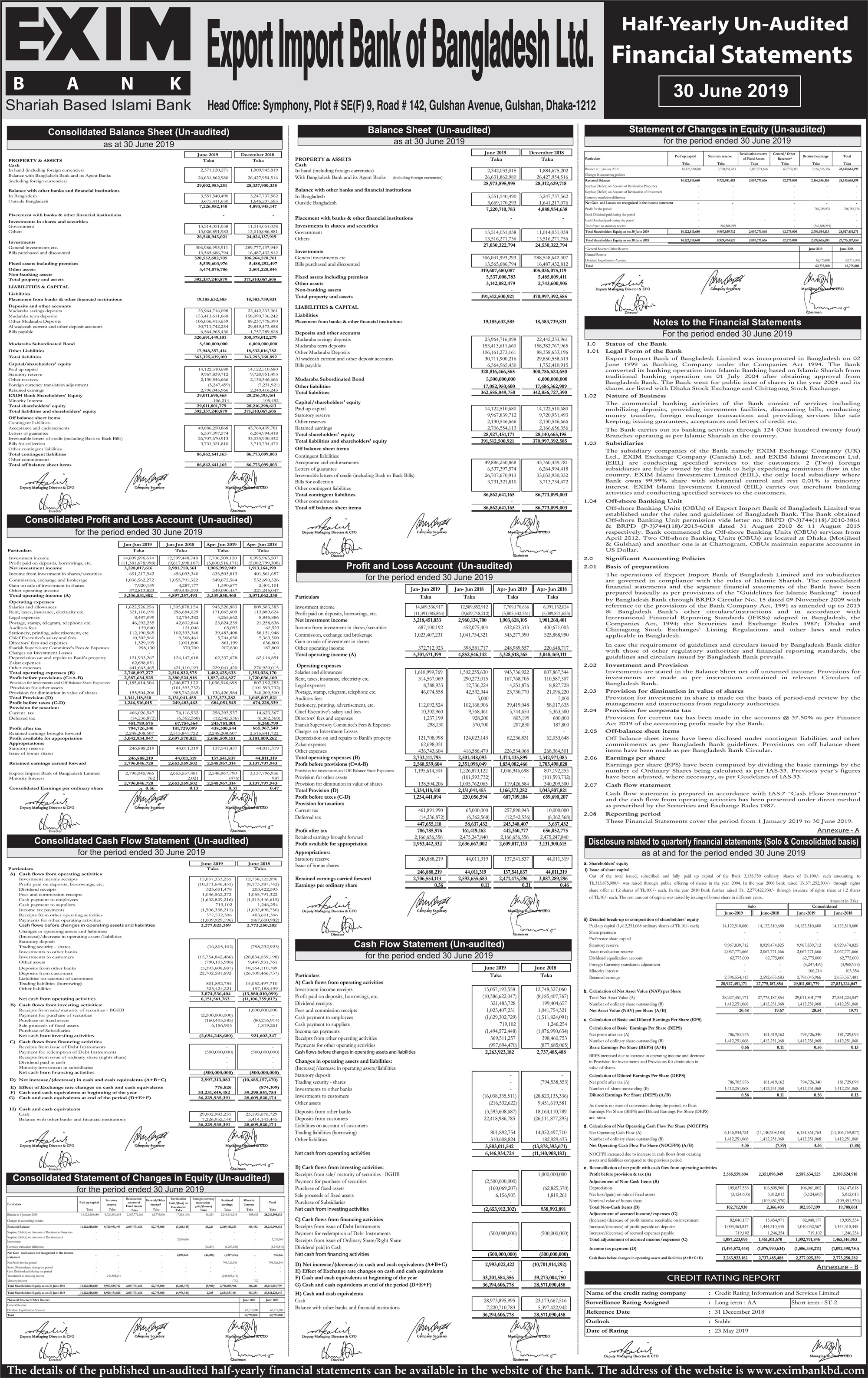 Half Yearly Un-audited Financial Statements of EXIM Bank