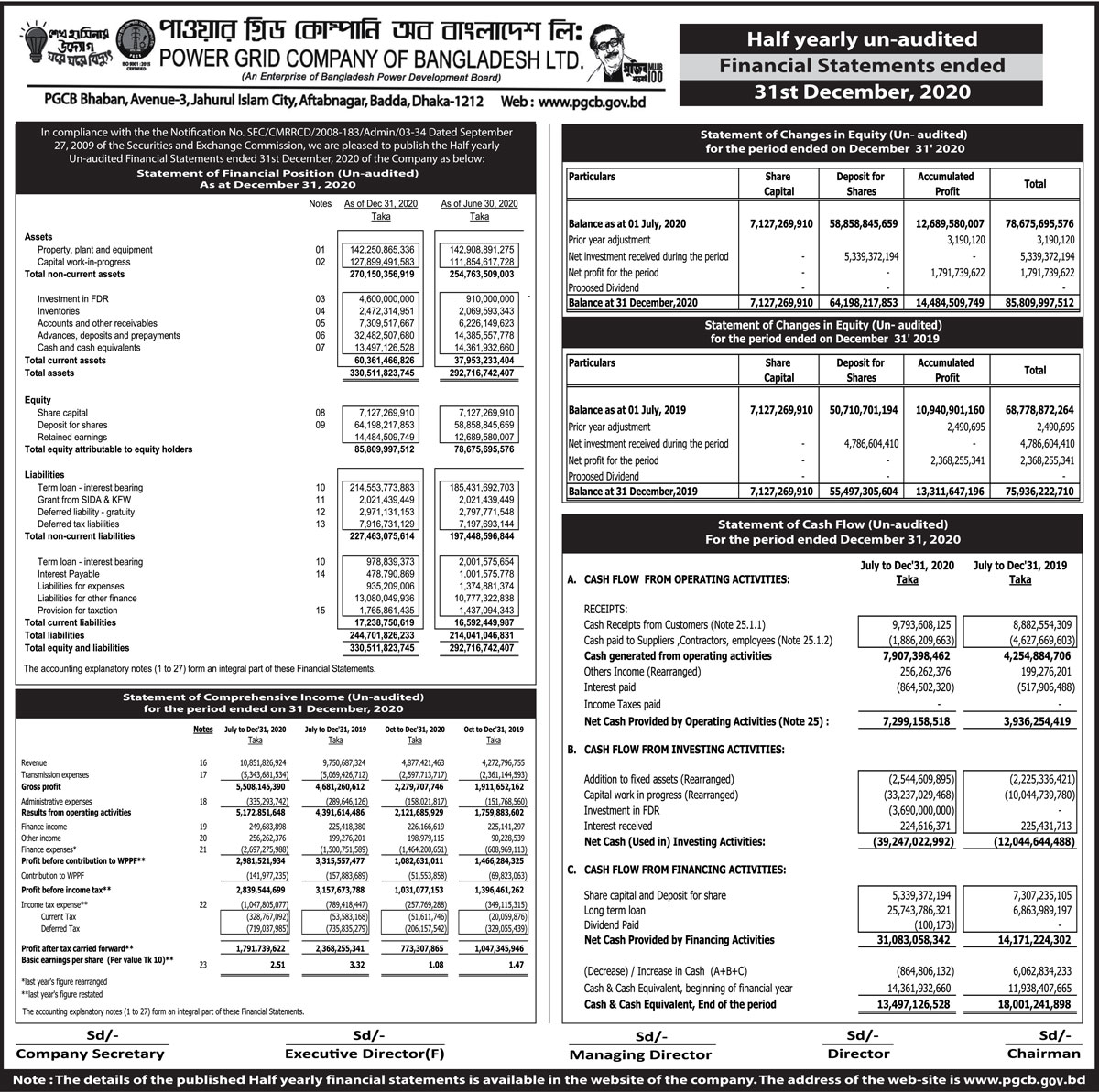 Q2 Un-audited Financial Statements of Power Grid Company of Bangladesh Ltd