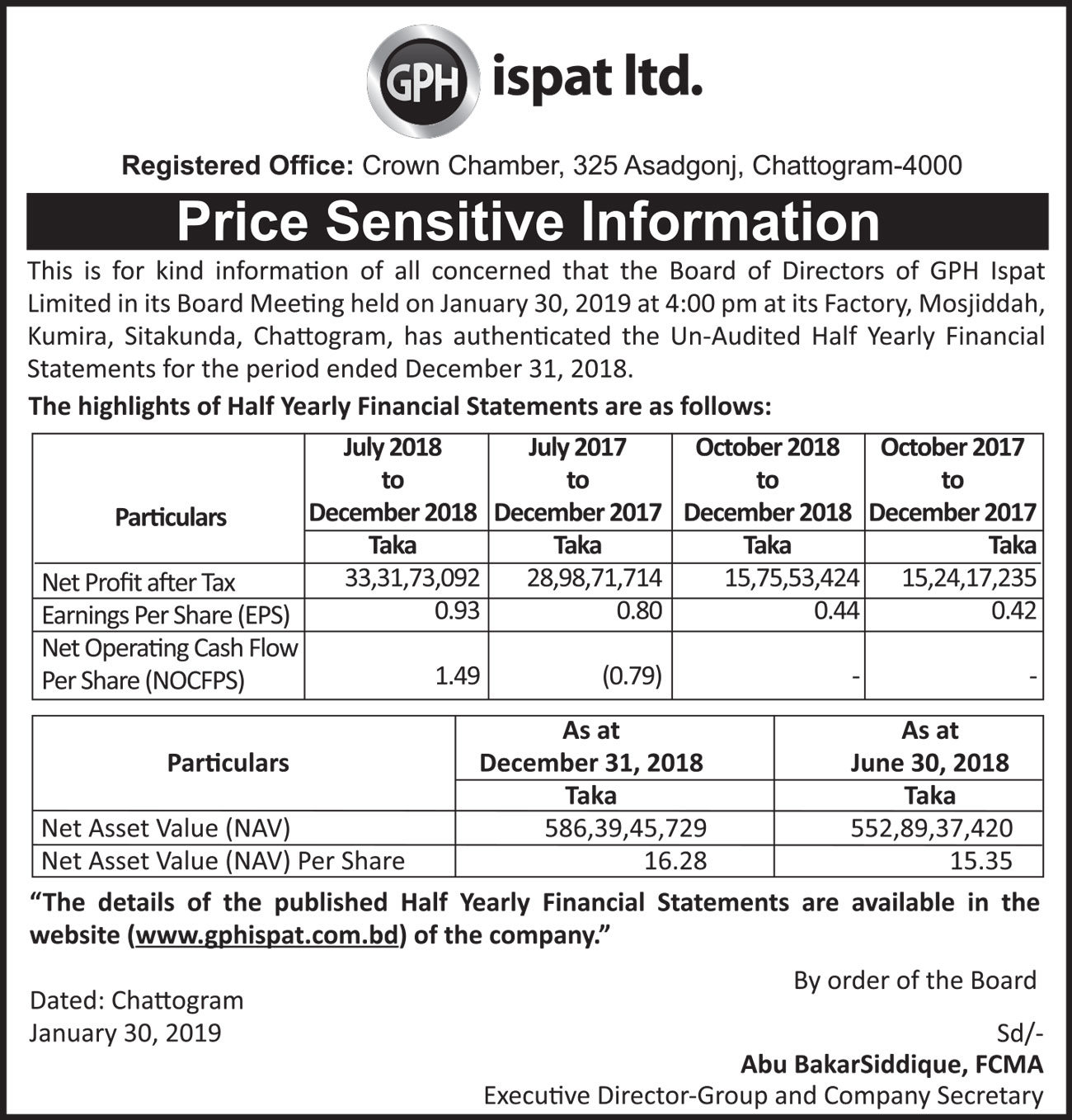 Half Yearly Un-audited Financial Stetements of GPH Ispat Ltd