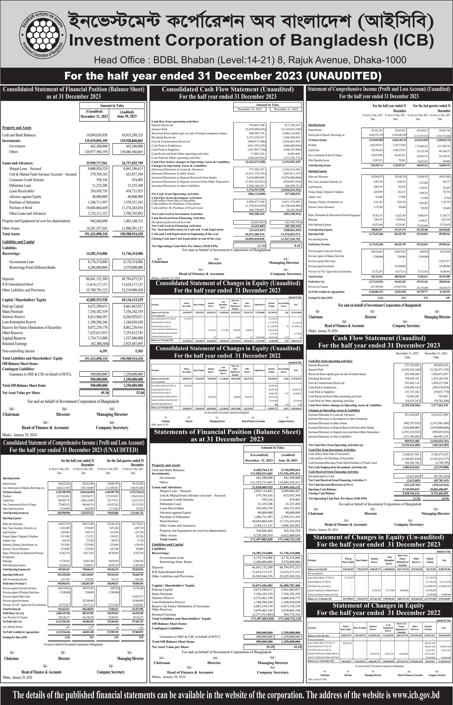 Price Sensitive Information of Investment Corporation of Bangladesh (ICB)