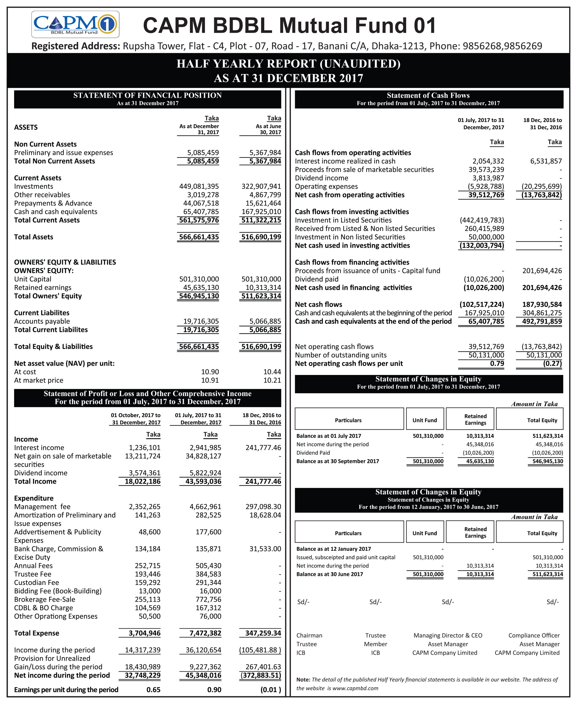 Half Yearly Financial Statements of CAPM BDBL Mutual Fund 01