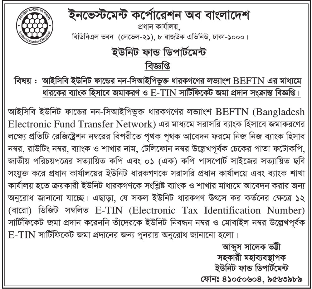 ICB Unit Fund Department Notice
