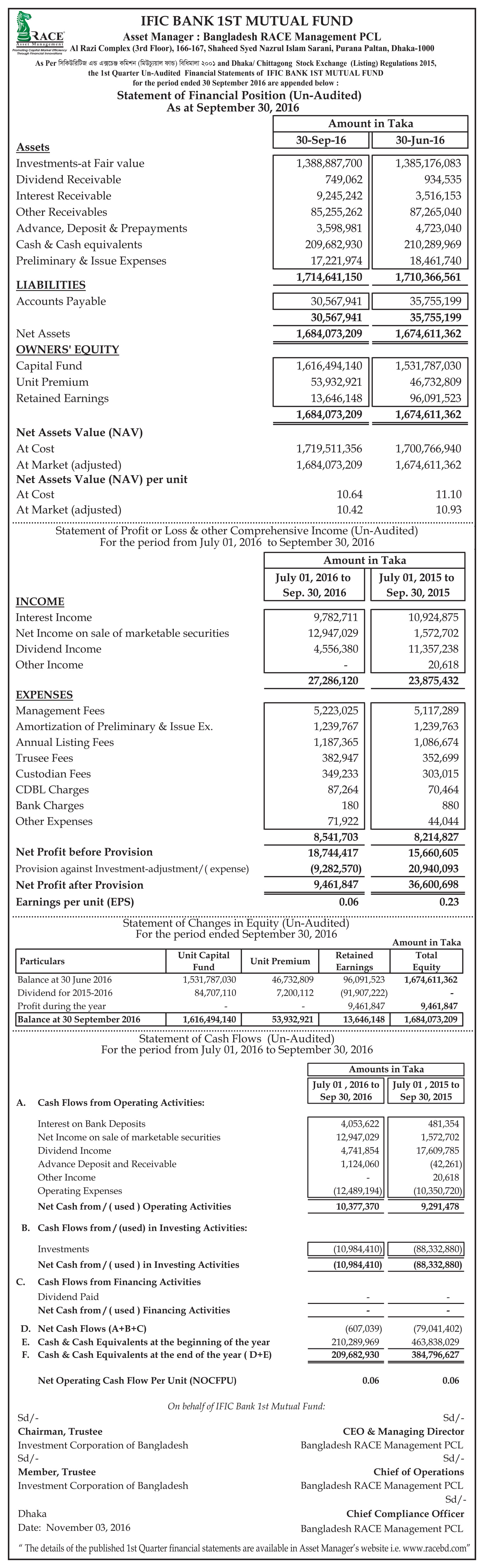 IFIC Bank 1st Mutual Fund 1Q Financial Statements