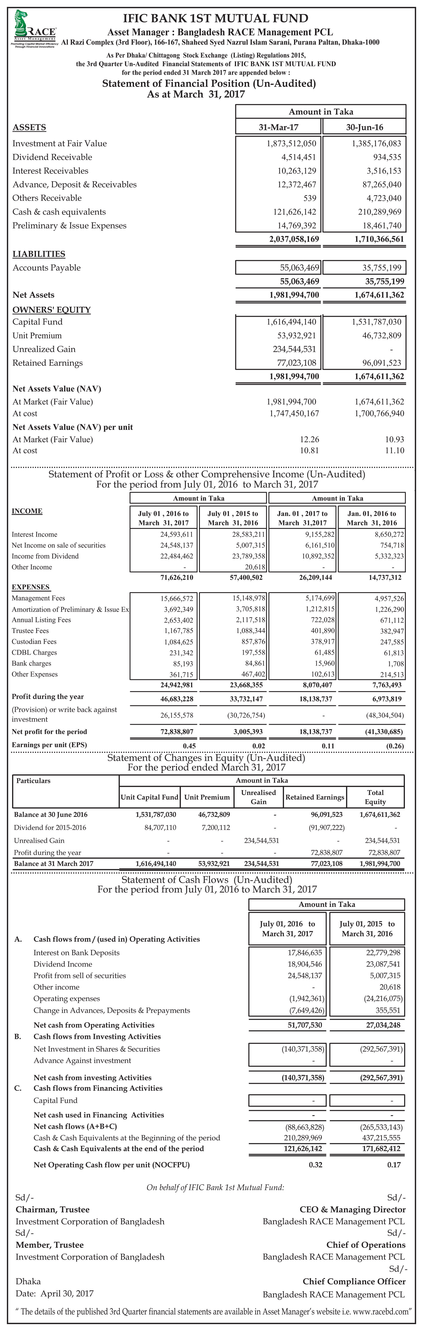 IFIC Bank 1st Mutual Fund 3Q Financial Statements